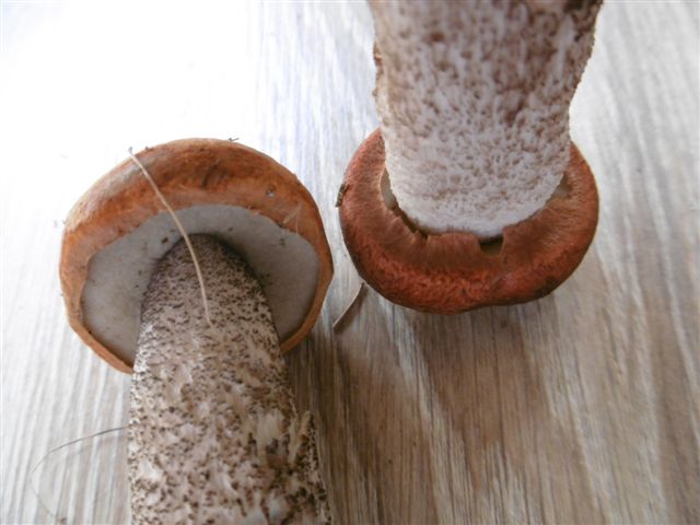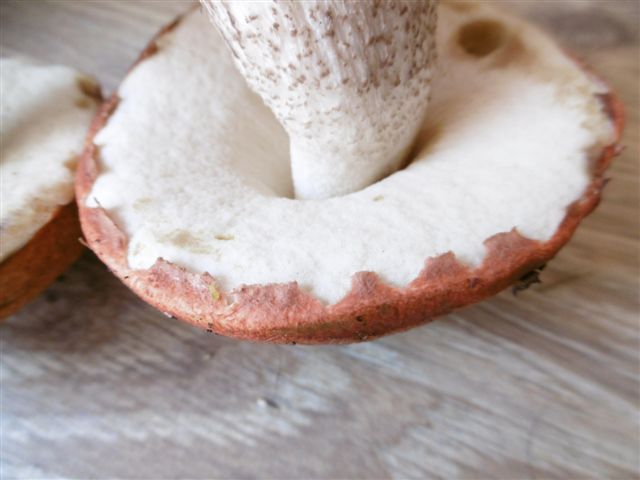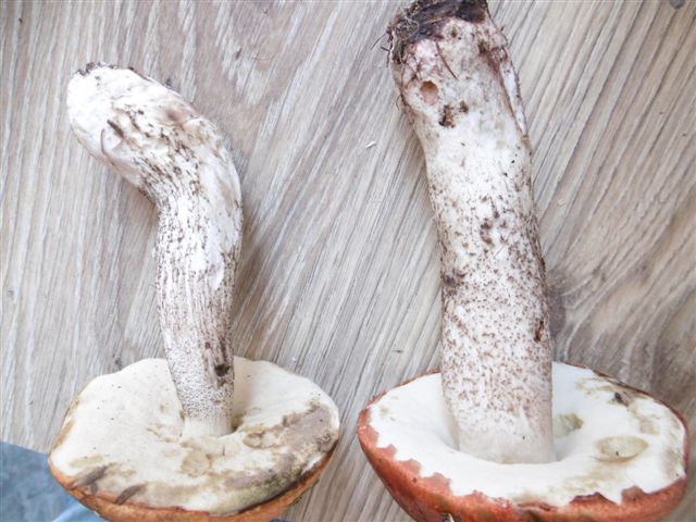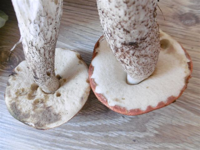 Leccinum leucopodium wäre noch viel blasser, also jung rein weiß am Stiel (wie deNname schon sagt).