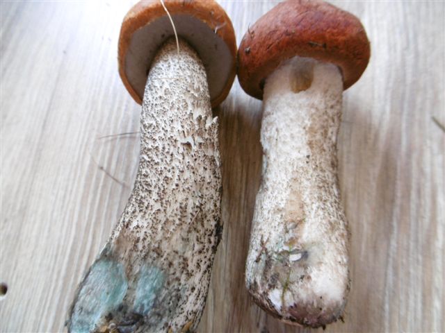 In der Stielsbasis blauen können m.E. auch die Nadelwaldrotkappen, also sowohl Leccinum vulpinum als auch Leccinum piceinum. Die beiden würde nur deutlich weniger im Flesich schwärzen. Leccinum vulpinum hätte aber rötere Stielschuppen. Und an Leccinum piceinum glaube ich schon wegen der Hutfarbe nicht.LG