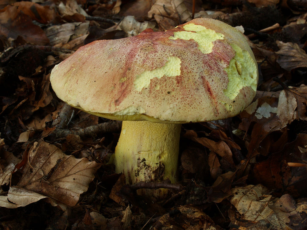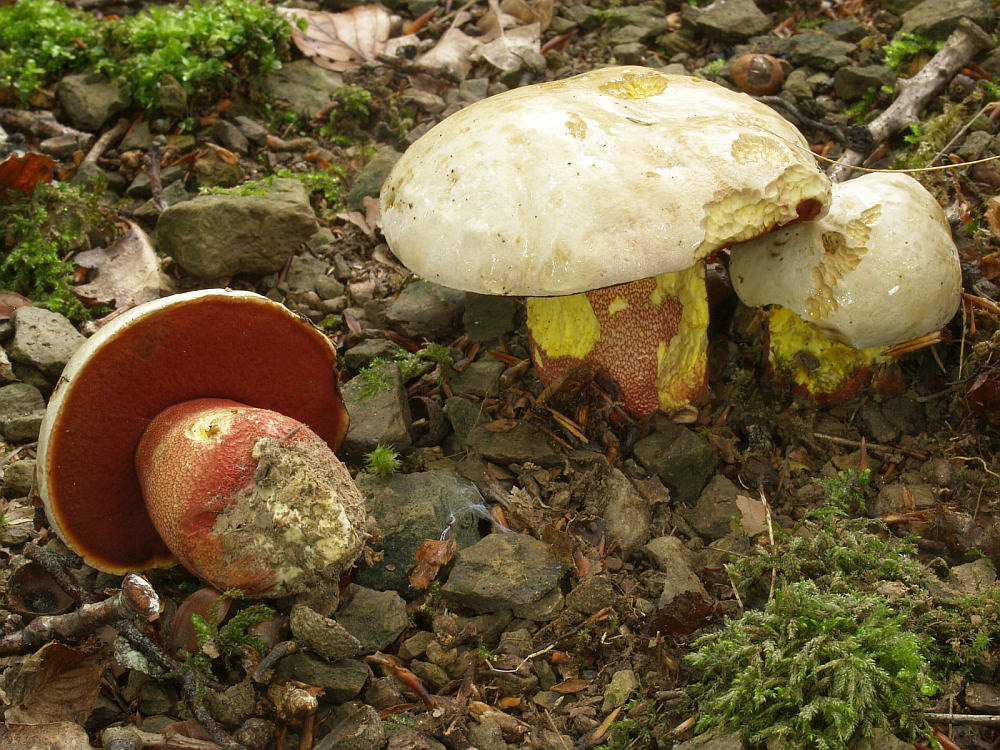 Erheblich seltener ist da schon der Blasshütige Purpur-Röhrling (Rubroboletus rhodoxanthus)