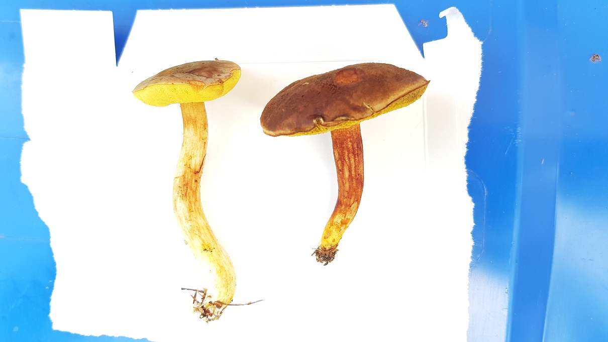 Rechts Xerocomellus Chrysenteron.Edit: Ja, die wären beide essbar. Rotfüße sind allerdings häufig mit Goldschimmel gefallen und auch gerne madig, also genau hinschauen.