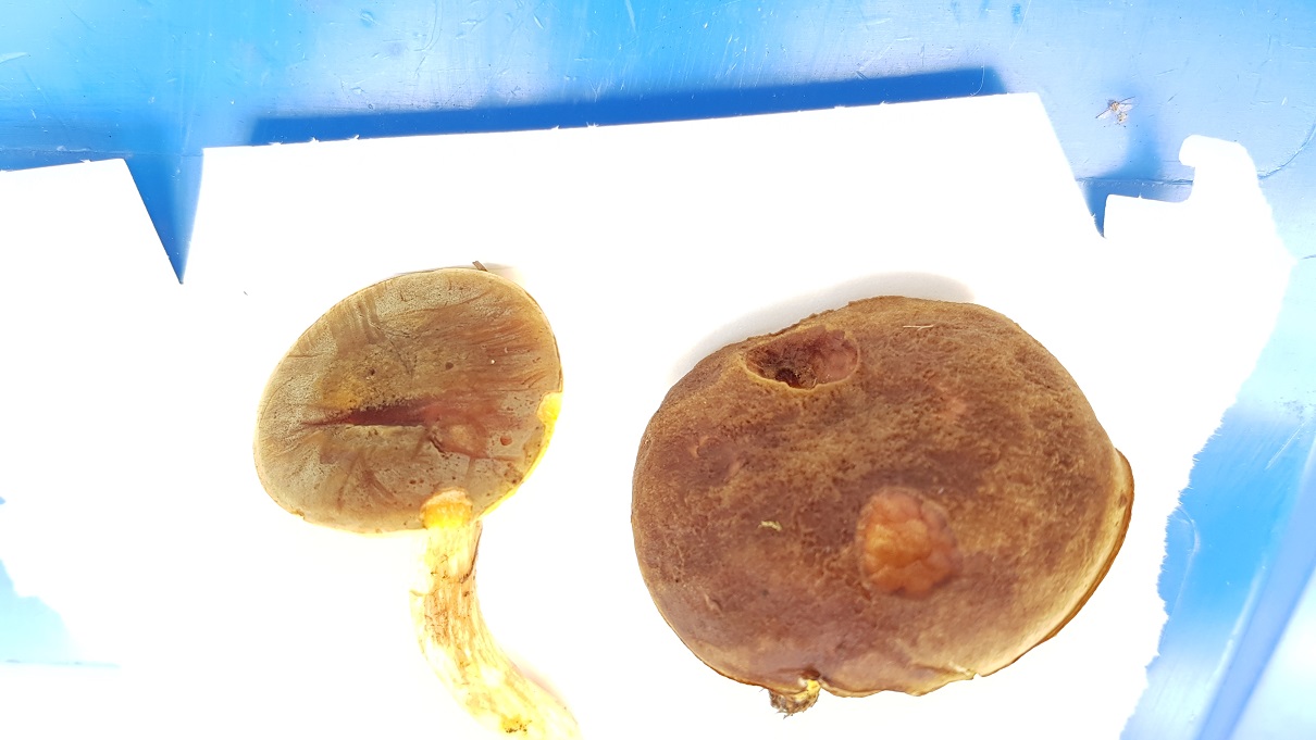ich sehe auf den Fotos keinen Rotfuß; eher links eine Ziegenlippe und recht den Braunen Filzröhrling...