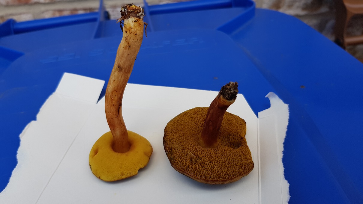 Rechts Xerocomellus Chrysenteron.Edit: Ja, die wären beide essbar. Rotfüße sind allerdings häufig mit Goldschimmel gefallen und auch gerne madig, also genau hinschauen.