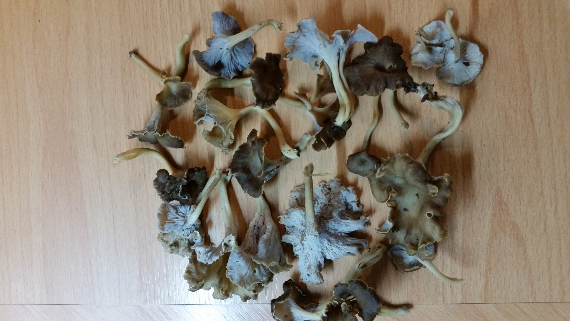 das müssten alles Krause Kraterellen sein - mit schwach ausgeprägten bzw. angedeuteten Leisten - korrekt?