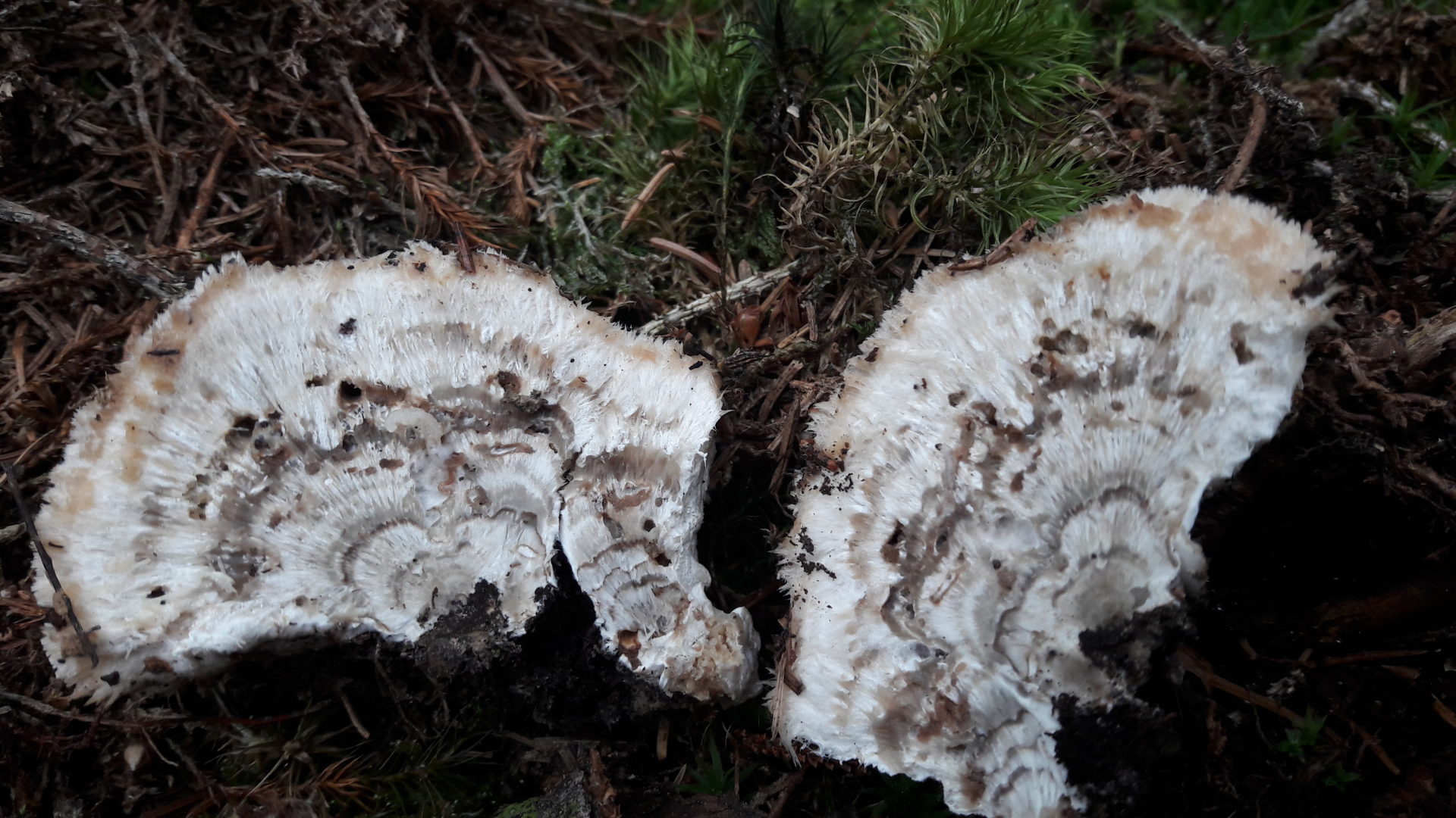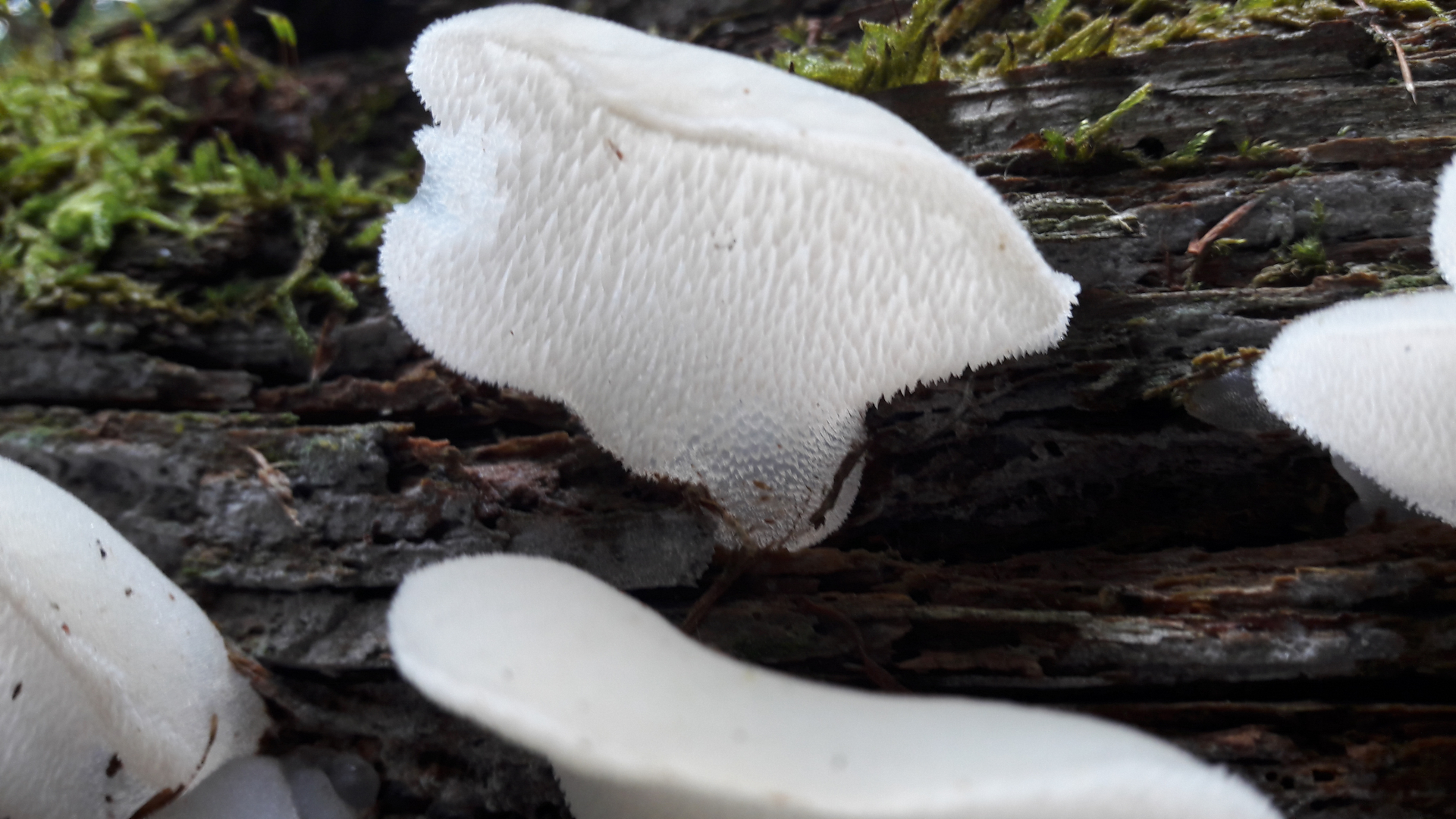 einen erstfund mit dem polsterpilz durfte ich gleich einige schritte weiter an bemoosten fichtenwurzeln machen- überrascht hat mich hier der angnehm süßliche duft beim aufgeschnittenen pilz- an der oberfläche roch er nach nassem hund...