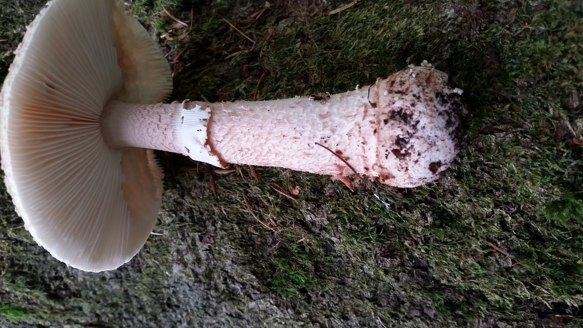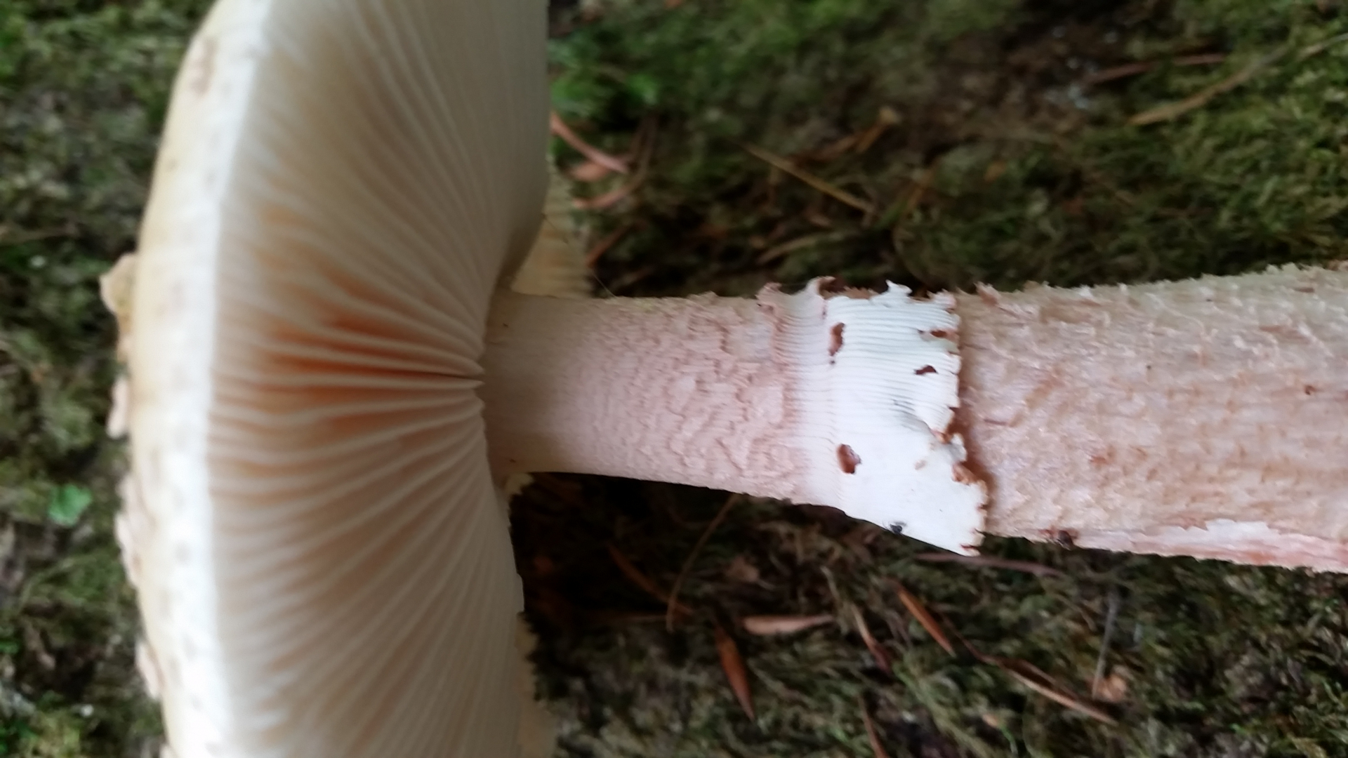 Kann man von meinen Fotos des Perlenpilz schon eindeutig von solchem sprechen?Ich hab ein wenig verglichen mit Pantherpilz und denke schon es ist ein Perlpilz...sieht nach gerieftem Ring aus und Stiel ist schon ziemlich rosa etc etc