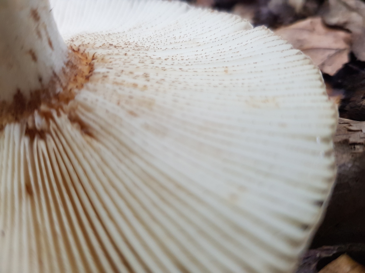 Dieser Fund setze mich in Erregung. Diese Größe, dieser stabile Ring und vor allem die eigenartige Hutzeichnung - das musste doch etwas Besonderes sein! Mit etwas Schlüsseln und Bildervergleich bin ich letzten Endes beim profanen Schiefknolligen Anisegerling (Agaricus essettei) heraus gekommen. Etwas enttäuschend - aber dennoch schön anzuschauen!