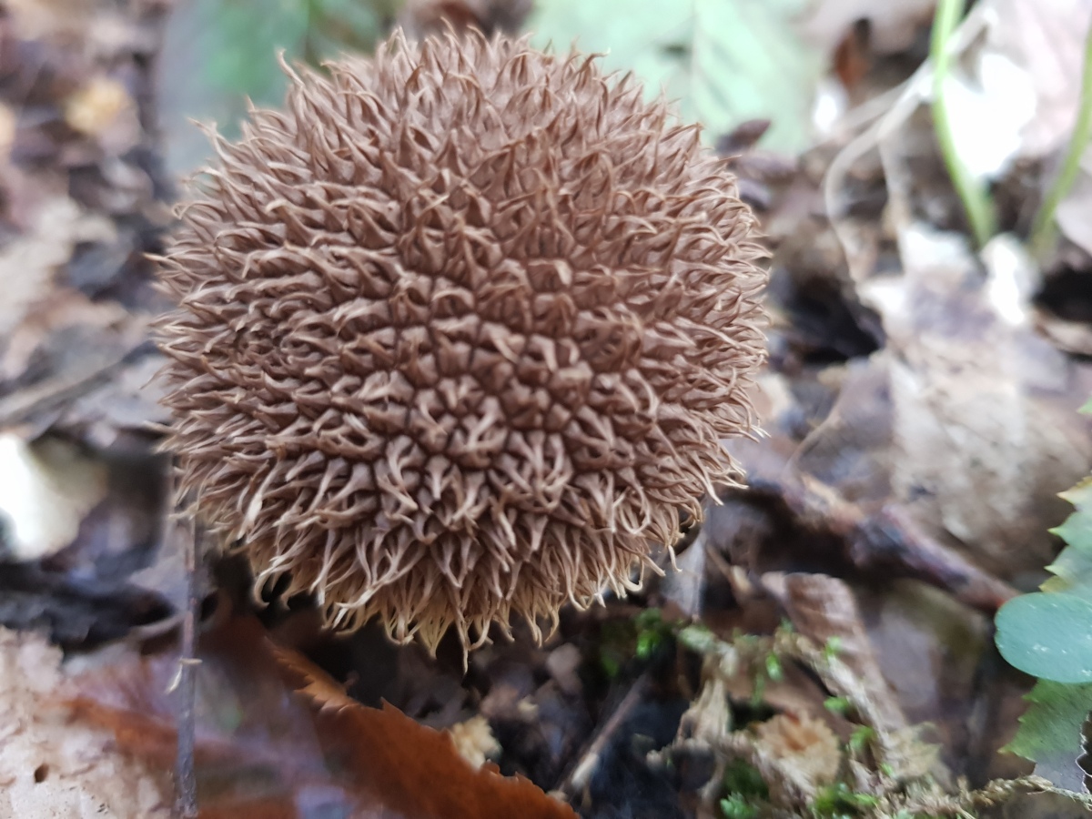 Hübsch anzusehen ist der Igelstäubling (Lycoperdon echinatum).