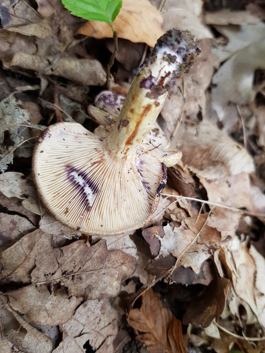 Der Brandige Ritterling (Tricholoma ustale) ist ein typischer Laubwaldbewohner.