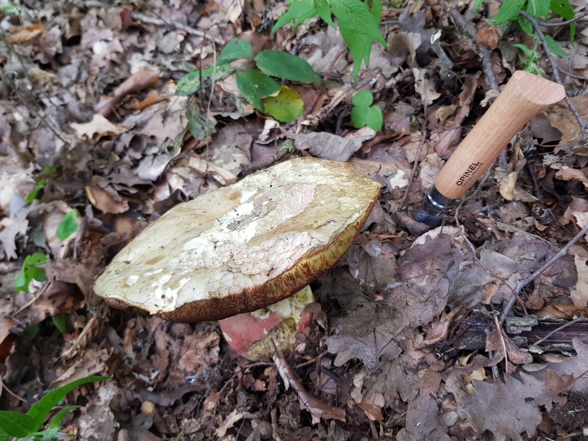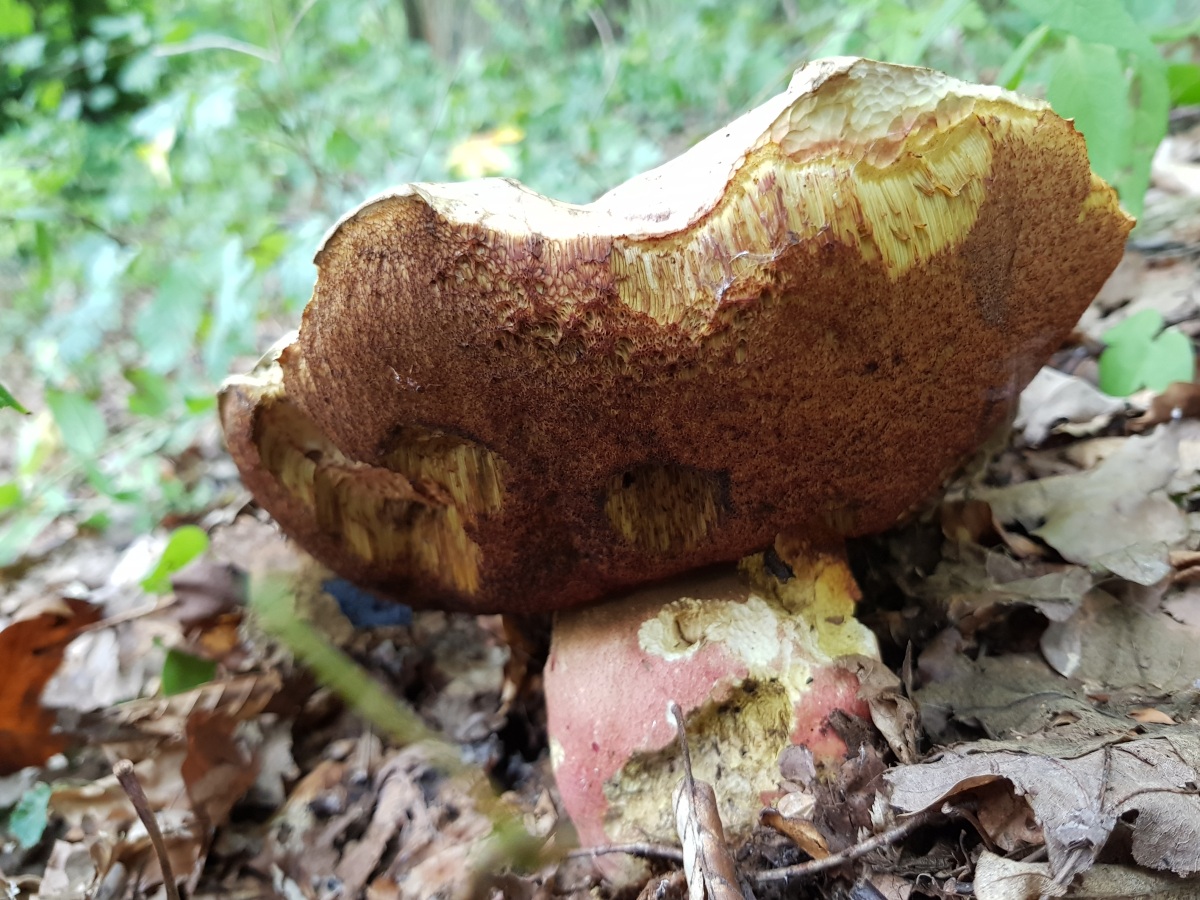 Wie jedes Jahr steht der Satansröhrling (Rubroboletus satanas) treu an seinem Standort. Dieser Fruchtkörper stammt bereits aus dem zweiten Schub, der erste war bereits Anfang August (von diesem fand ich vor einigen Wochen nur noch die riesige stinkende Pilzleichen).