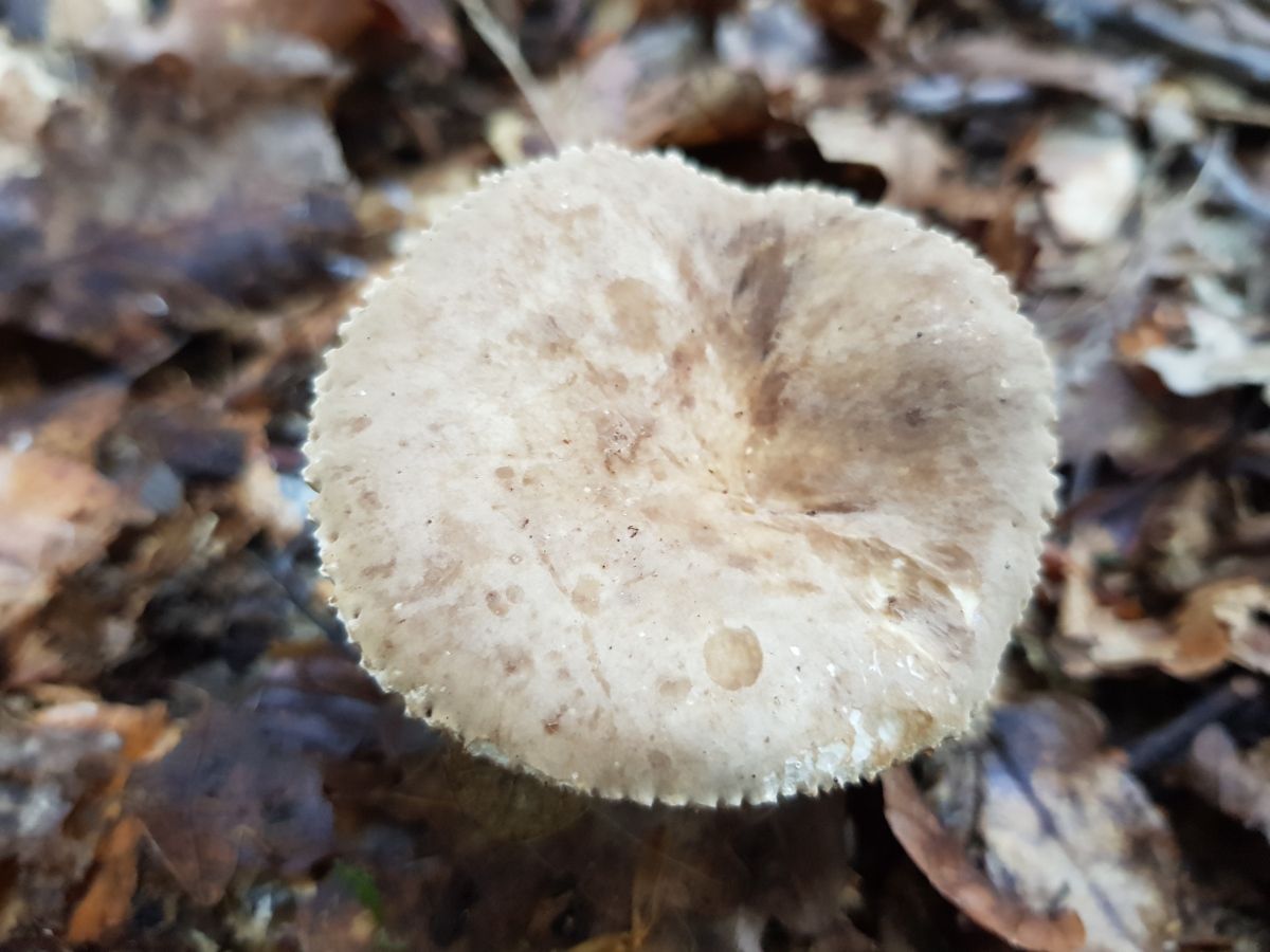 Bei diesem Fund bin ich mir nicht sicher, leider habe ich keinen Fruchkörper zur genaueren Bestimmung mitgenommen. Für mich einer der Erdritterlinge, mit kräftigem Mehl-Geruch. Am bereits gut angetrockneten Fruchtkörper fiel eine rote Verfärbung des Hutrandes bzw. der Lamellenscheiden auf. Diese Eigenschaft kenne ich vom Rötenden Erdritterling (Tricholoma orirubens) den ich mal als als Hypothese in den Raum werfe?