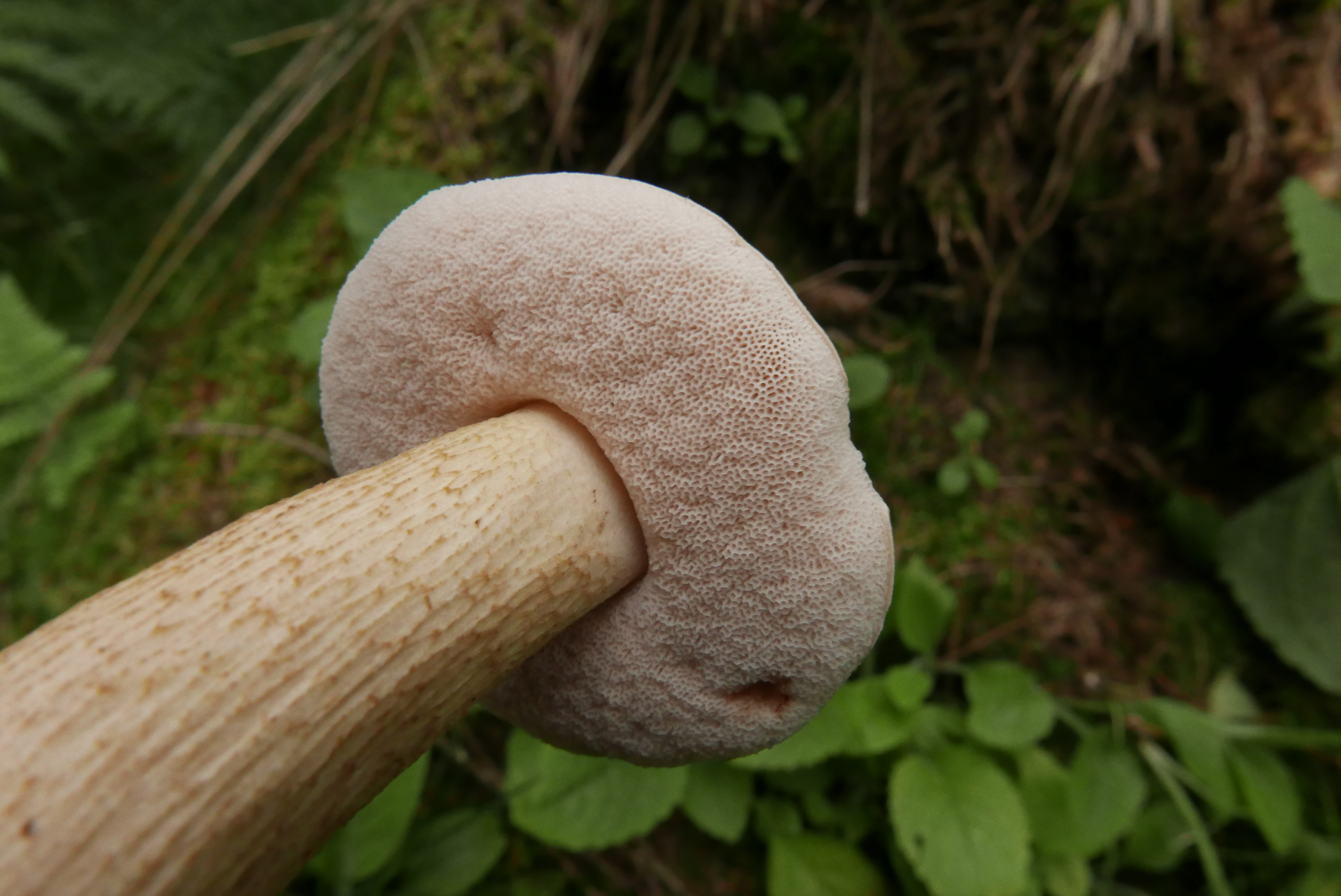 Heute habe ich einen gefunden, den ich erst für einen Gallenröhrling hielt, weil die Röhren auch fast weiß sind.