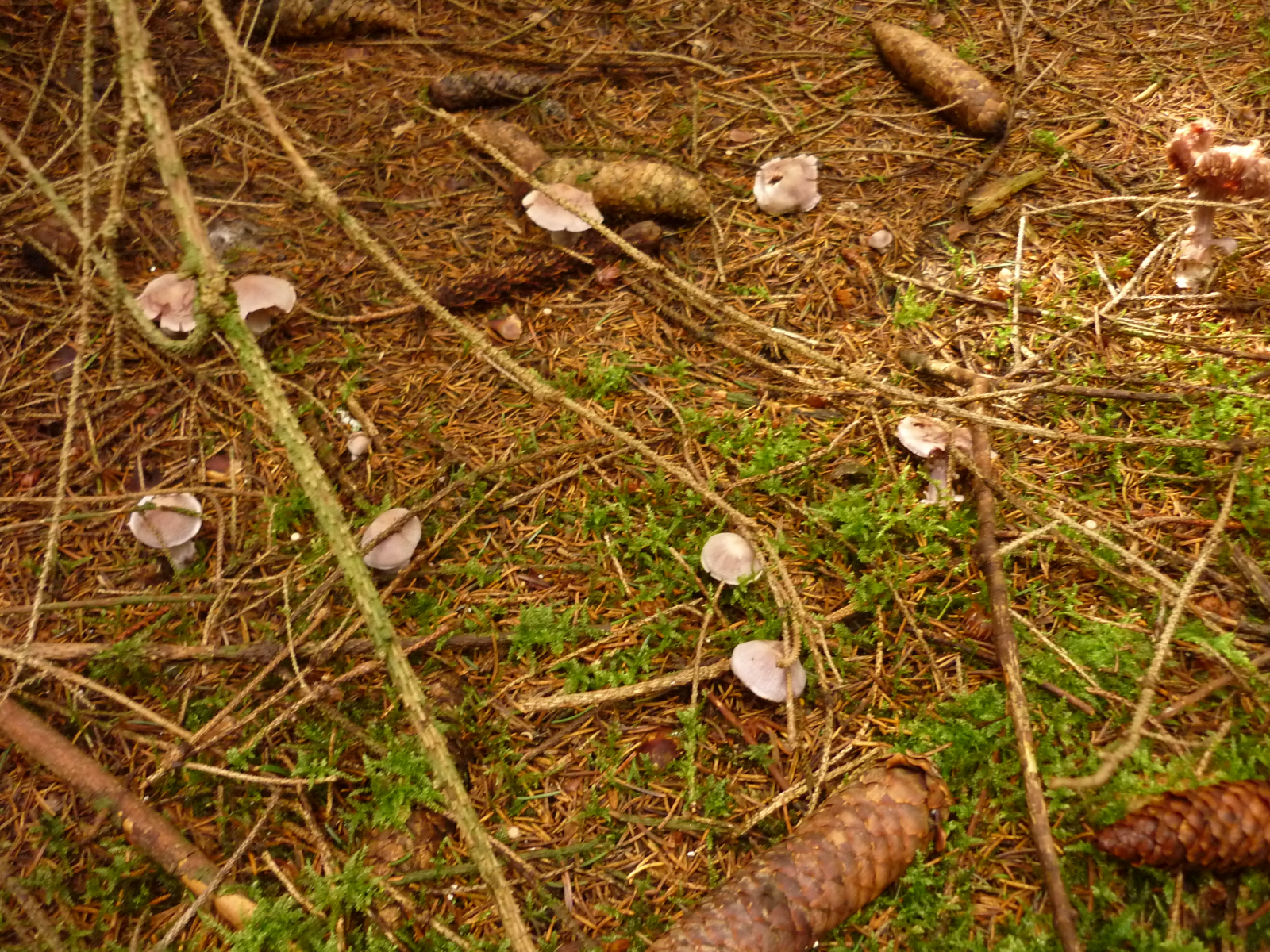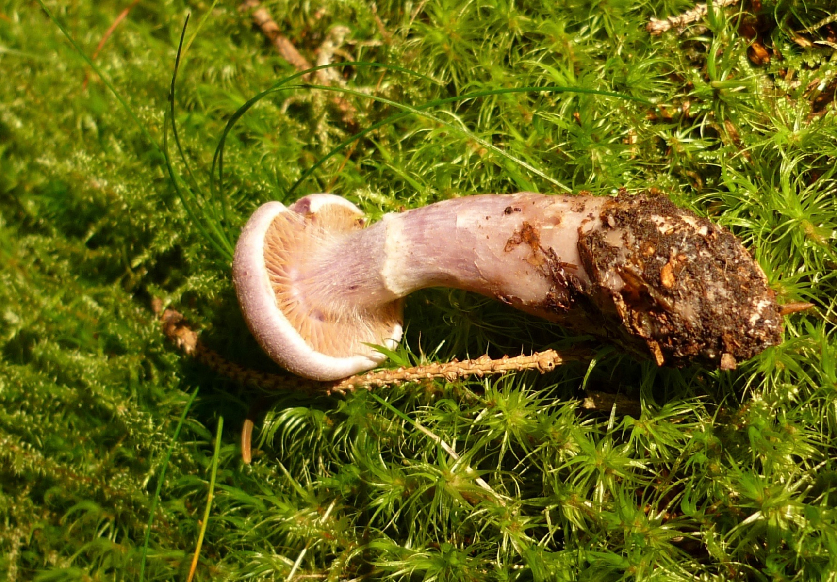 2] Doch der Wald war Lila, überall, ich hoffte so sehr auf Lepista Nuda, doch da waren auch immer Schleierreste und ich denke, die Sporenfarbe braun passt auch nicht. Und ich erinnere mich an den angenehmen Geruch, der hier sicher nicht vorhanden war. Daher in Ermangelung an Alternativen komme ich doch immer wieder auf den Bocksdickfuß (CORTINARIUS CAMPHORATUS).
