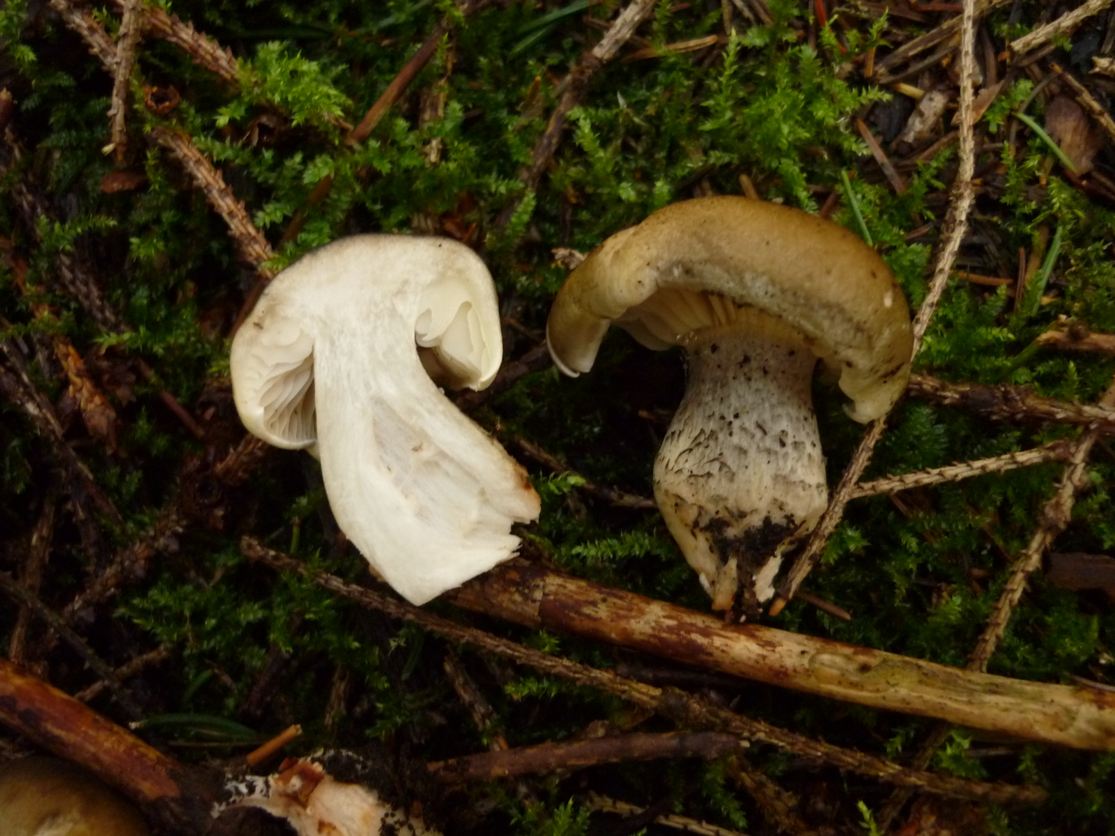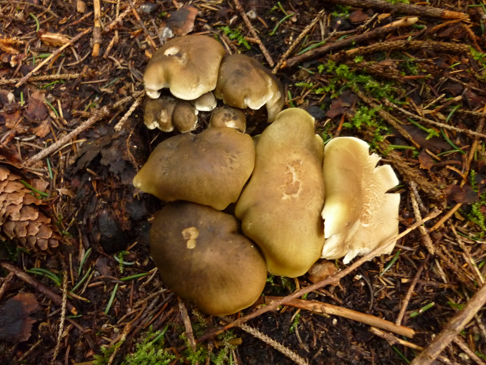 3. Unter Fichten, manchmal gesellig, manchmal klein, olivbraunes Dach. Geruch ja, aber kann ich nicht beschreiben, Geschmack mild. DerHurdurchmesser des Größten war ca. 10 cm. Ist das etwas Richtung Tellerling vielleicht?