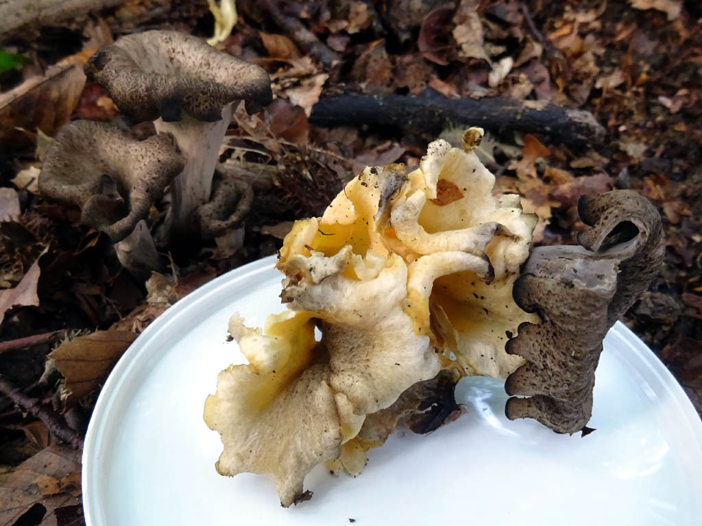 Die sehen absolut aus wie Totentompreten, nur mit der Farbe stimmt was nicht. Normale Trompeten wuchsen wohl in unmittelbarer Umgebung.