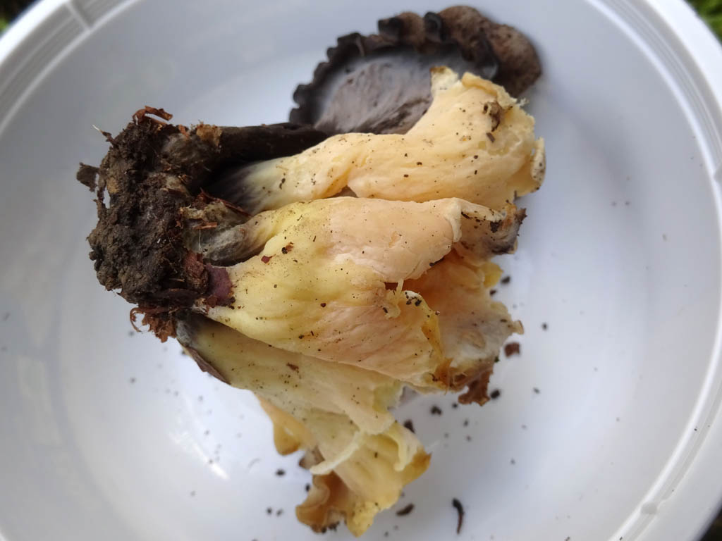 occasionally entire mushroom yellow with only stem base black