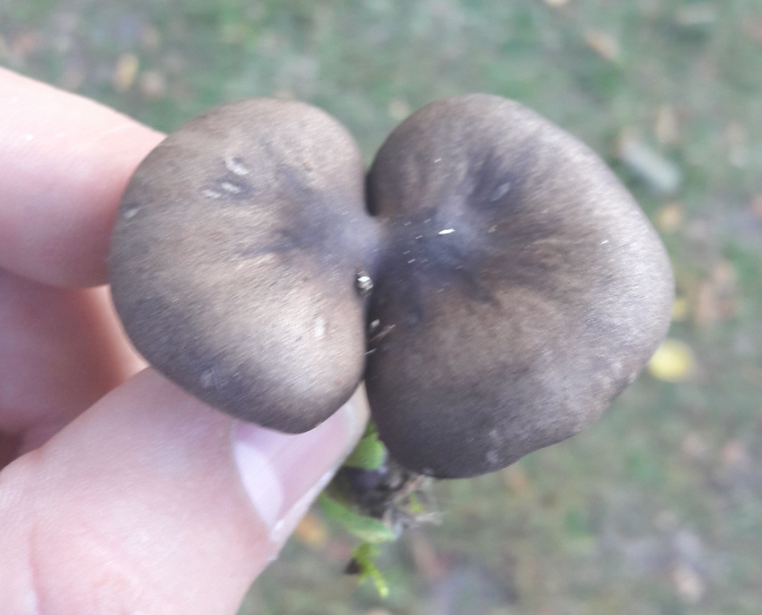 Ich dachte zuerst an den Mohrenkopfmilchling, aber Milch trat bei Verletzung der Lamellen oder des Hutes keine aus. Allerdings waren die Lamellen doch recht spröde. Es scheint ja ähnlich gefärbte Schnecklinge zu geben, da passt aber der Lamellenansatz irgendwie nicht. Irgendwas in Richtung Weichritterlinge vielleicht?