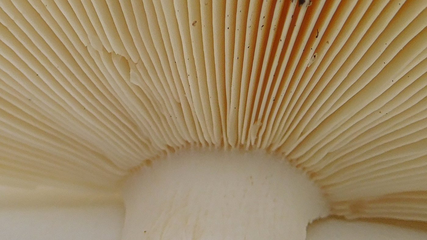 Keine passende Art kann ich zu 100% finden. Entweder fehlt der Geruch oder die Lamellen am Stiel sind nicht angewachsen oder ........