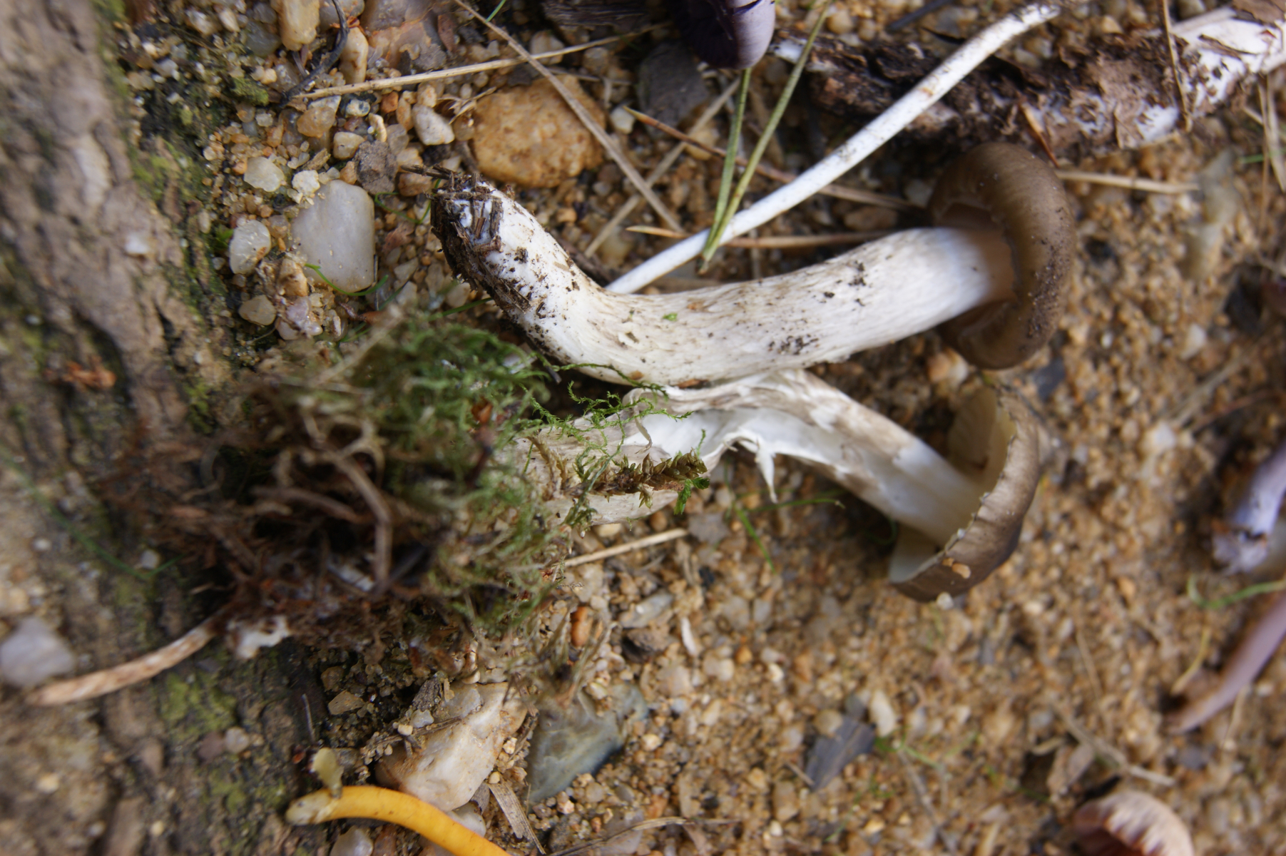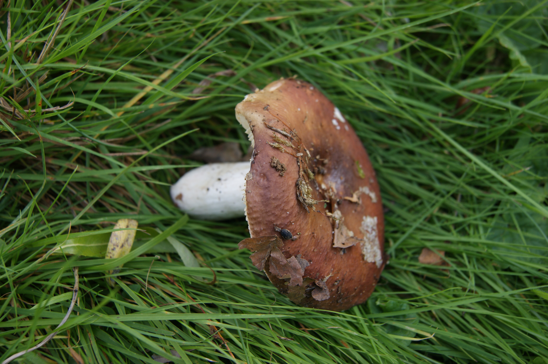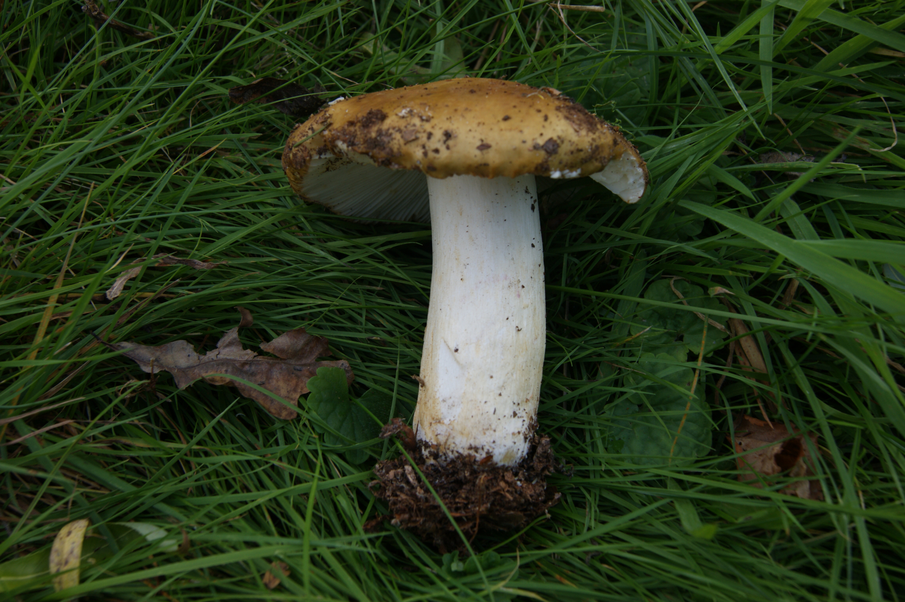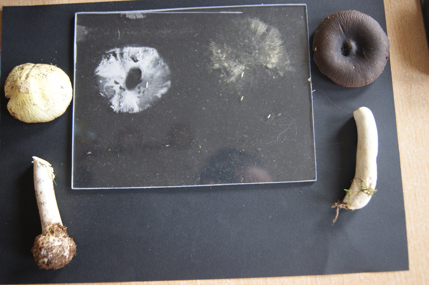 hier gehört der Sporenpulverabdruck rechts dazu (links ist der Gelbe Knollenblätterpilz)