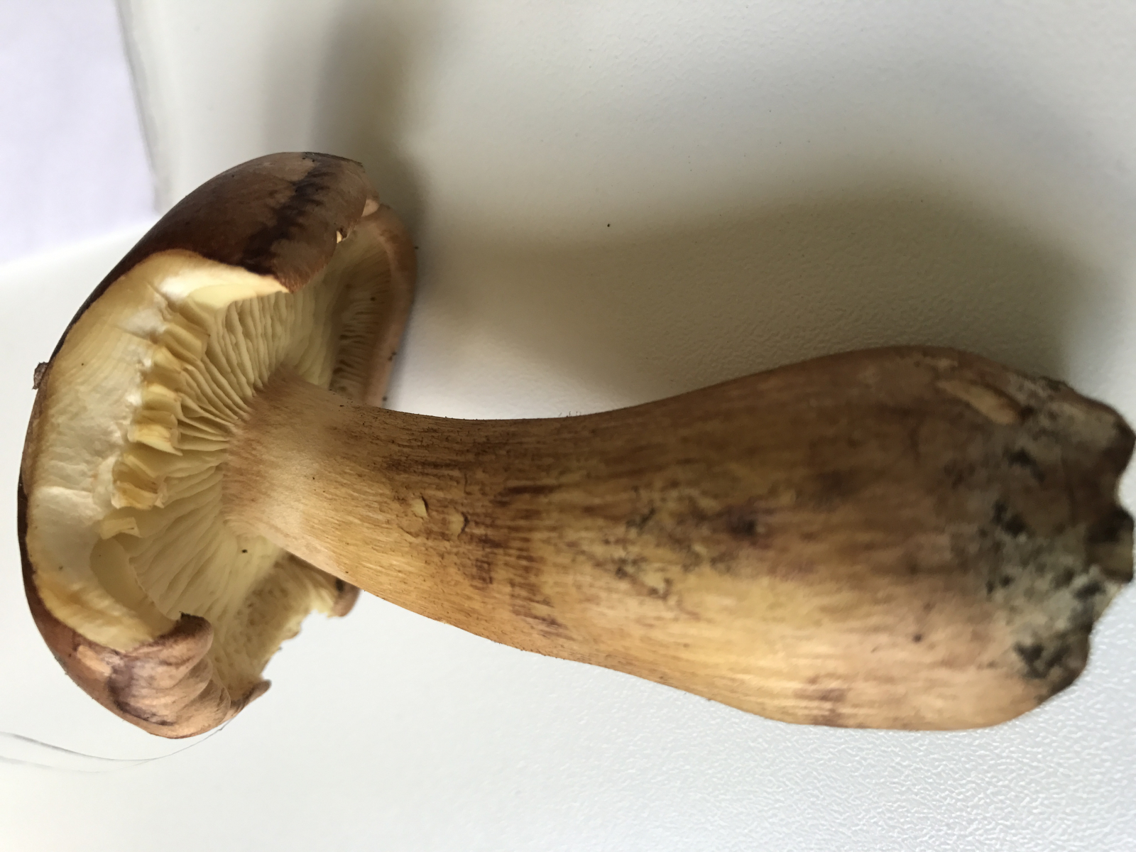 Habe ihn gestern im Wald gefunden. Mit mehreren der gleichen Art. An einer ner Stelle. War im Laubwald. Er riecht nicht sehr doll nach Pilz. Hab ihn mal aufgeschnitten. Vielleicht kann jemand dann mehr sagen. Wie heißt er?