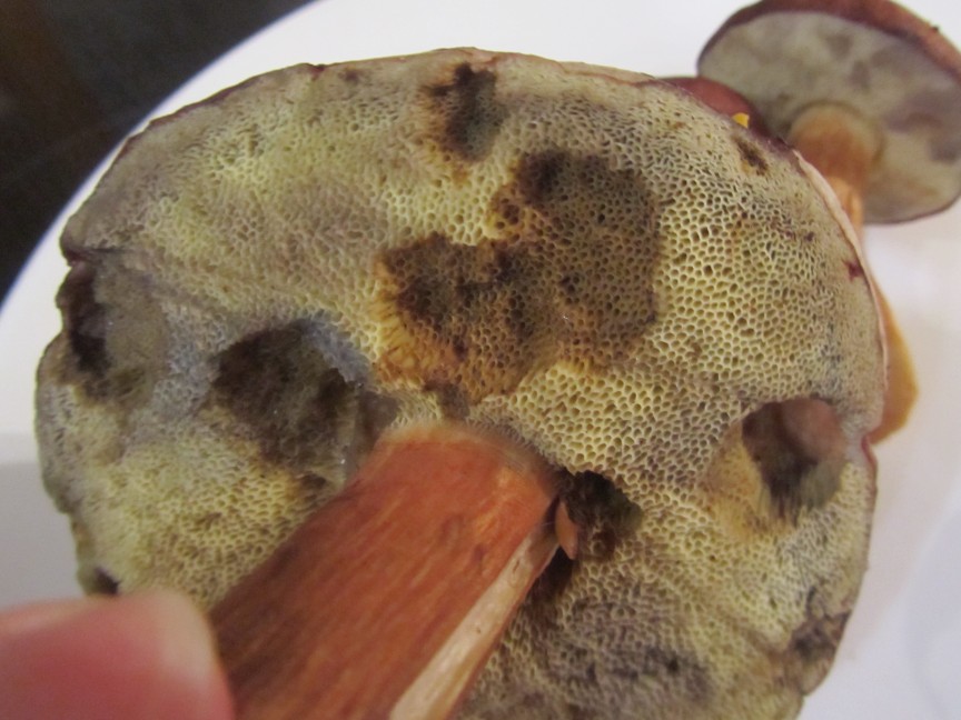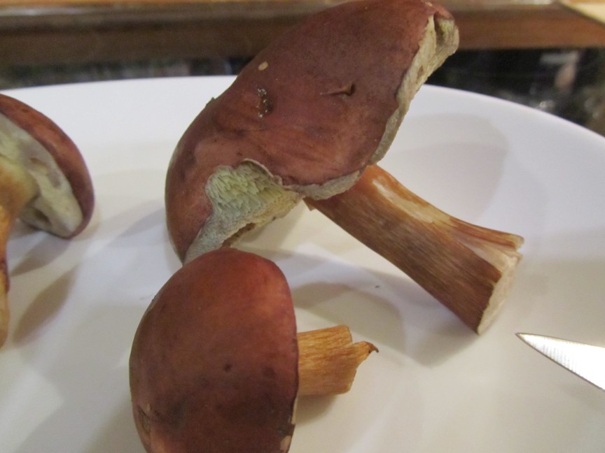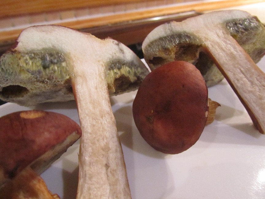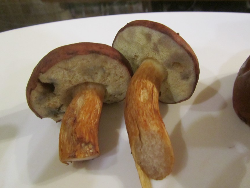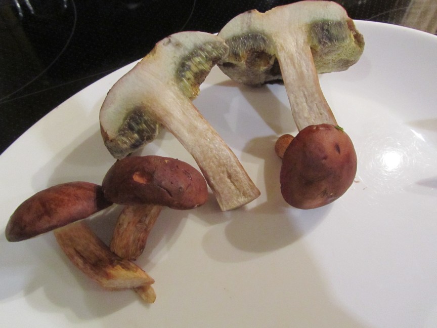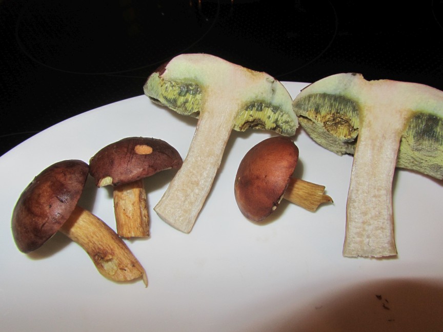 Es könnten maximal noch Butterpilze sein, dann würde ich sie jedoch nicht essen, da sie in den neusten Pilzbüchern als möglicherweise giftig und allergen gelten. Jedoch würde diese nach dem Anschneiden wohl nicht "nachblauen" und auch etwas heller aussehen. Es war zudem recht nass im Wald und die Maronen leicht schmierig an der Oberfläche, Butterpilze sollen da sehr schmierig sein.