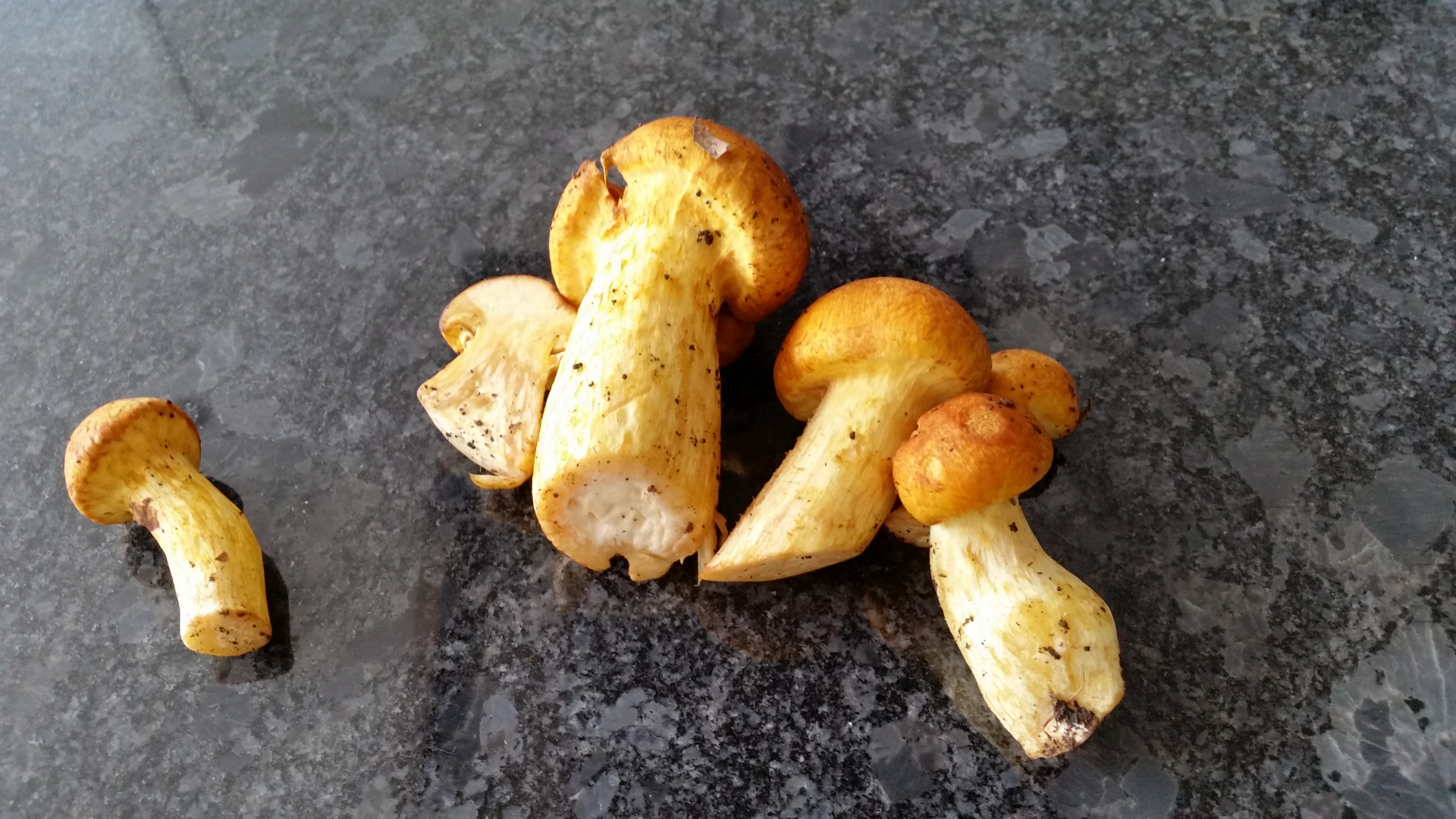 Im ersten Moment hatte ich z.B. auch an kleine Suillus sp. (Schmierröhrlinge) gedacht, aber bei Deinen Bildern ist z.B. gar nicht zu erkennen (jedenfalls für mich nicht), ob es Röhren- oder Lamellenpilze sind,