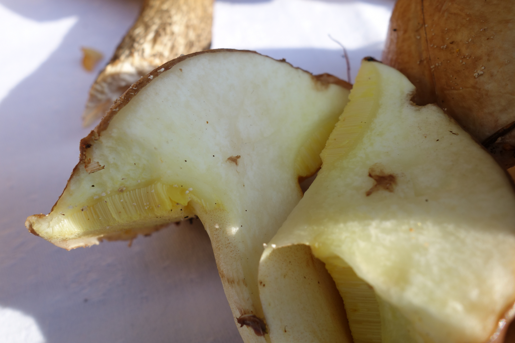 Schneid ihn mal durch - wenn das Fleisch weiß ist, weißt du, es ist ein echter Pfifferling.