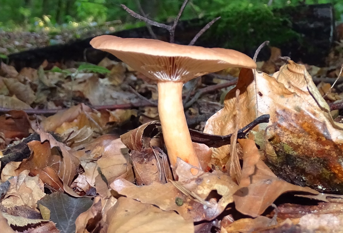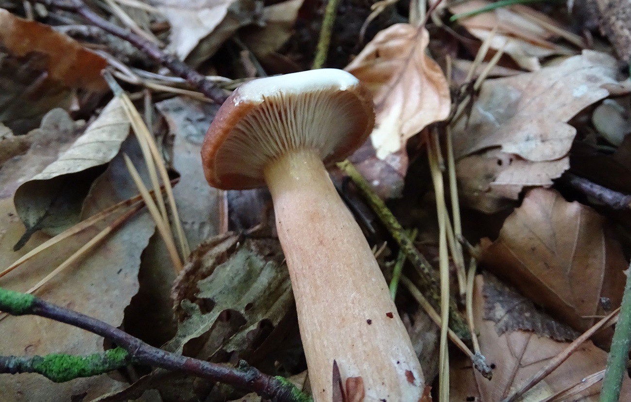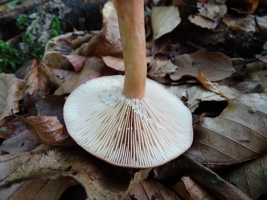 vorgestern habe ich es mal wieder bei mir an den Otterbach geschafft. Außer einer guten Portion Schiefknolliger Champignon auch noch ein paar Sachen mitgenommen zur Bestimmung. Unter anderem diesen Milchling hier - das oben ist erstmal nur ein Arbeitstitel, da ich mit meiner Bestimmung nicht wirklich im Reinen bin.