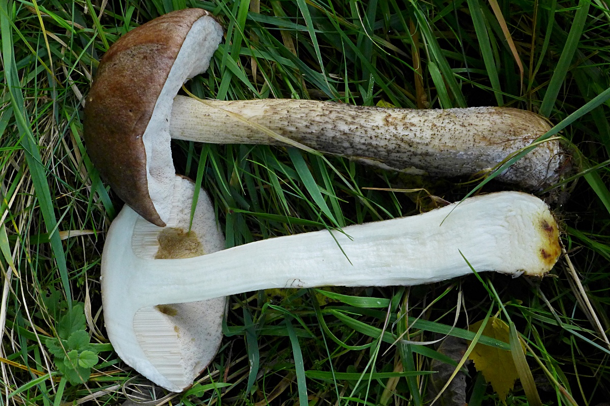 Nur 2 ältere Exemplare, nur 6 cm Hut (schon weich) , Stiel aber endlos lang.