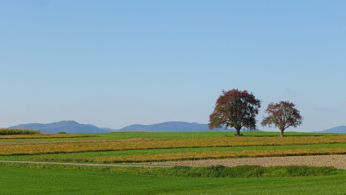Hochrhein/Dinkelberg bei Rheinfelden/Baden ca. 400 m, Übergang Wald zum Feld, feuchtes Gras, Begleitbäume Eiche, Weide am Waldrand, im Waldinneren überwiegend Buchen, einzelne Fichten über 20 m weit weg, keine Birken.