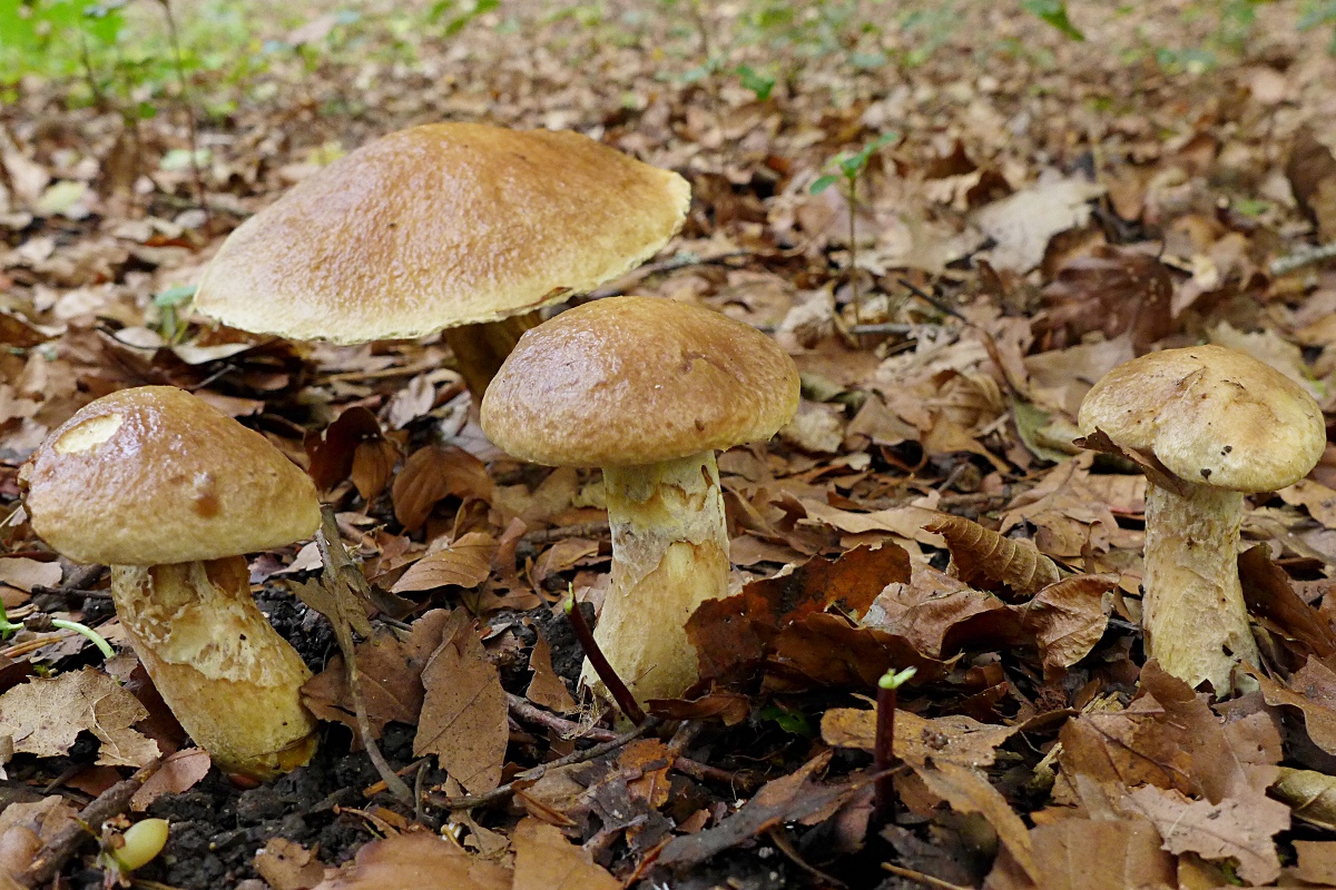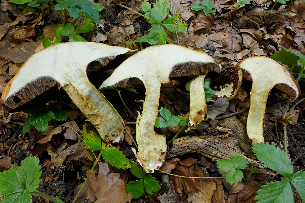 Ich ärgere mich über mich selbst, dass ich einen der größeren älteren Pilze dort nicht längs durchgeschnitten habe, um zu überprüfen, wie die Fleischfärbung exakt aussieht (Das Merkmal war mir noch nicht als wichtig bewusst).