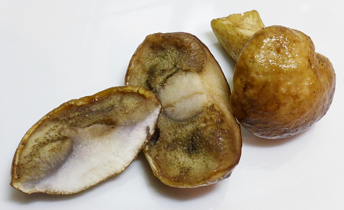 (Die ganz alten Pilze vor Ort habe ich nicht durchgeschnitten sondern stehen gelassen.)