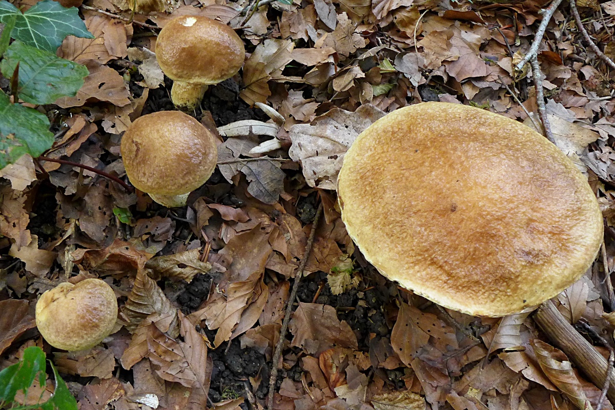 hier habe ich ein hübsches Grüppchen von Lärchenröhrlingen, die rel. leuchtende Farbe kam mir "unbekannt" vor.