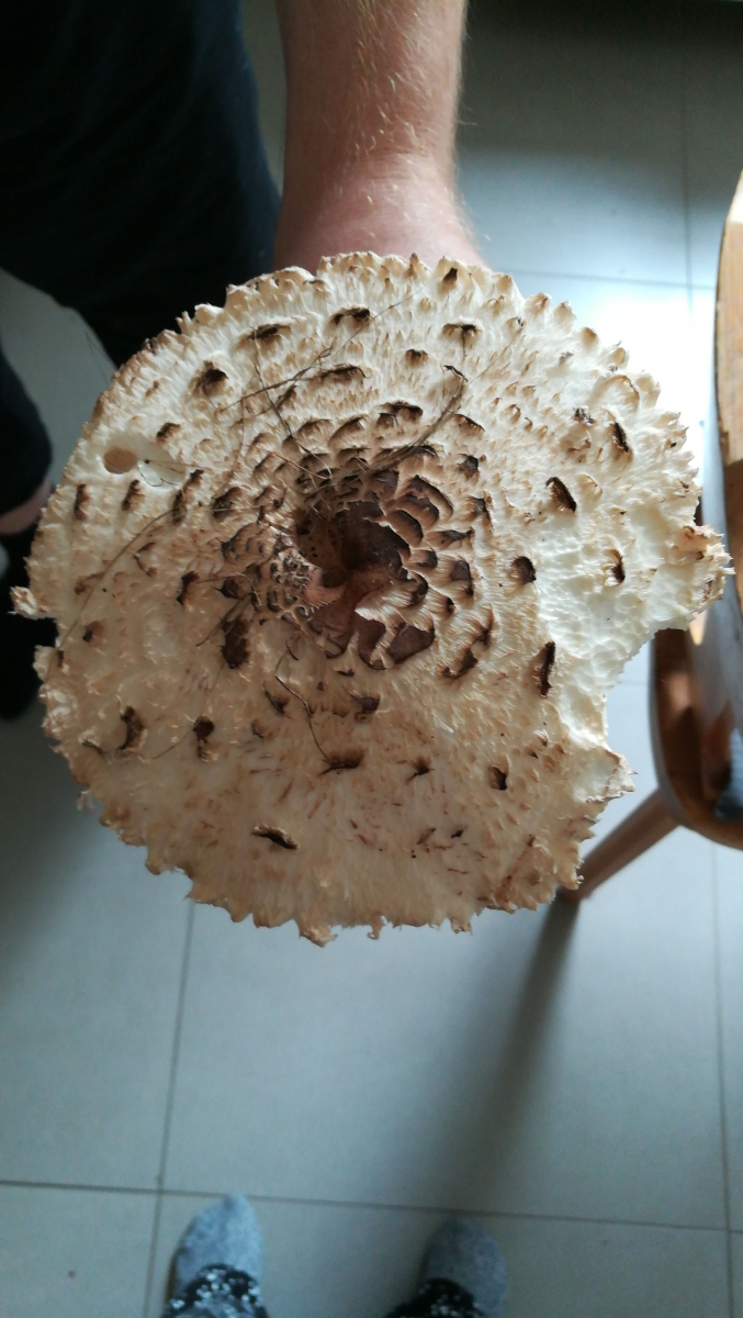 definitiv kein Parasol, sondern was aus der Chlorophyllum-Ecke. Die Stielbasis ist dabei immer recht interessant.