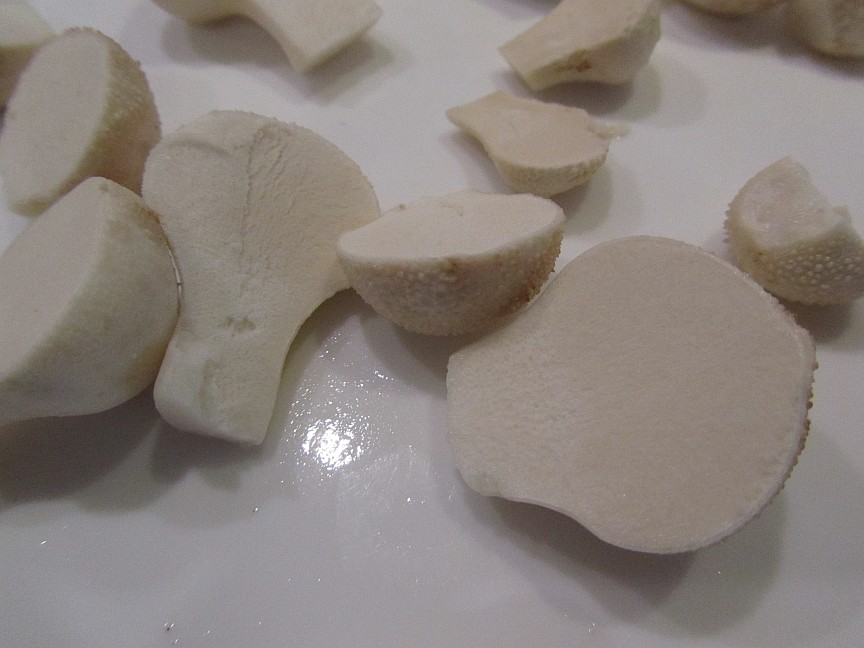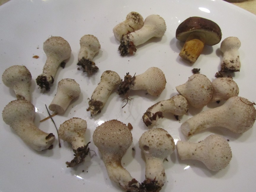 ich habe heute einige schöne Flaschenstäublinge gefunden, zumindest spricht alles dafür das es welche sind. Alle hatten diese kleinen Wärzelchen wie Sandkörner, die sich leicht mit der Hand abrubbeln lassen, alle sind noch sehr jung und völlig weiß in der Mitte, alle riechen gleich. Meine Frau findet den Geruch gut, ich finde ihn recht stark, eher so "medizinische Pilze" mäßig, erinnert etwas an Chemie. Ein Marone habe ich dazu noch gefunden. Die Flaschenstäublinge würden mich geschmacklich interessieren, auch wenn ich den Geruch nun nicht unbedingt toll finde. Muss ich wirklich alle "Wärzelchen" abbürsten, gibt es bei der Zubereitung sonst noch etwas zu beachten? Ich habe mehrere Fotos gemacht, am Schluss auch alle aufgeschnitten und gereinigt, nur eben noch ein paar dieser "Sandkörnchen" hängen oben auf. Das Aufschneiden habe ich gemacht damit ich wirklich keine kleinen Giftpilze mit Lamellen gesammelt habe, keiner hat auch nur Anzeichen davon, zudem riechen alle exakt gleich stark :)