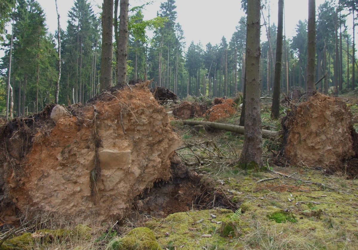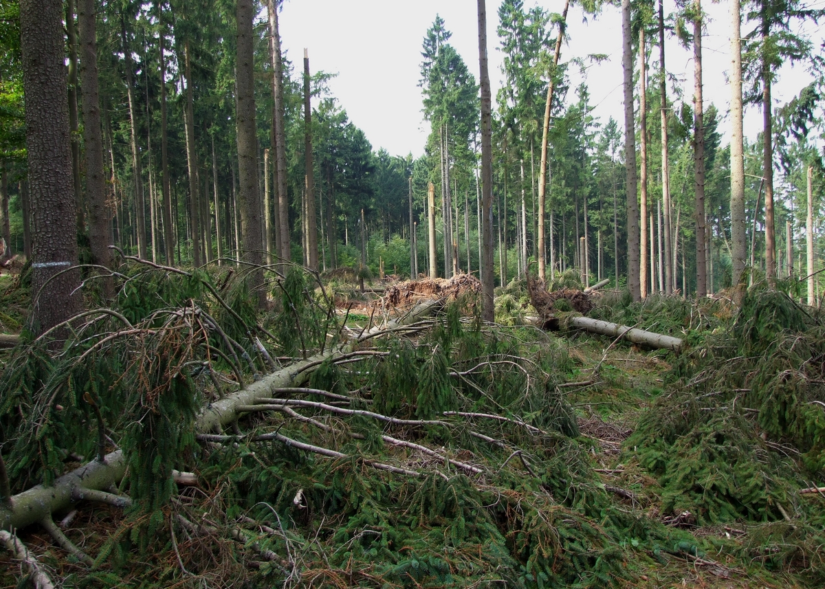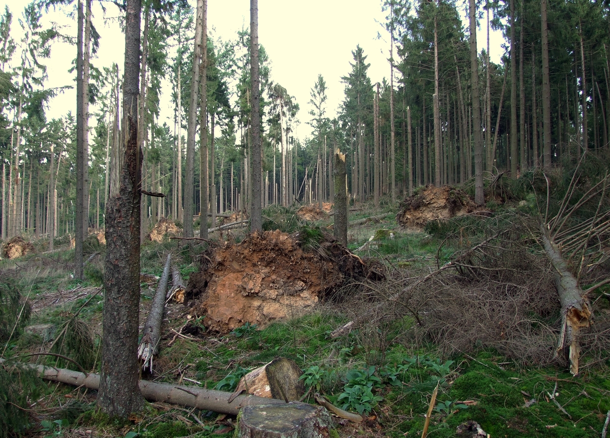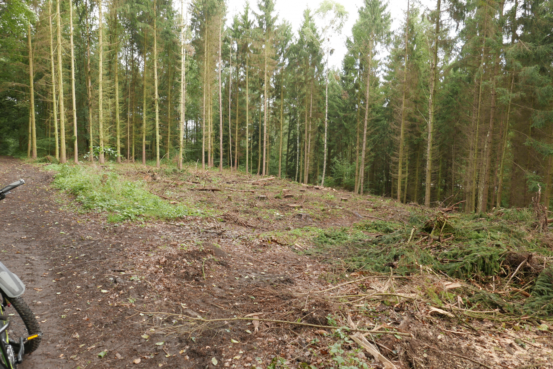 Von Weitem dachte ich an die bösen Waldarbeiter, aber es war wohl der letzte Sturm, der besonders diesen Wald extrem getroffen hat (520 m ü. NN):
