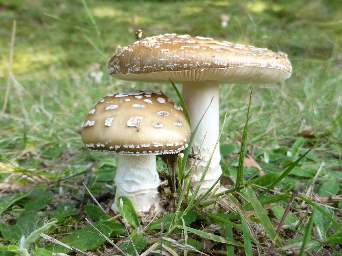 Ich hatte eine große Waldwiese voll mit Stein- und Fliegenpilzen - eine ganze Menge dicker Kumpels. Die abgelichteten standen tatsächlich so da und ich habe nur etwas Gras weggerupft. Aber einsetzender leichter Regen und der vorher stehengelassene Regenschirm erlaubten nur ein Schnappschuss. Meine Kumpels waren deutlich dicker als die meiner Frau, aber sie hat eben das schönere Foto gemacht.