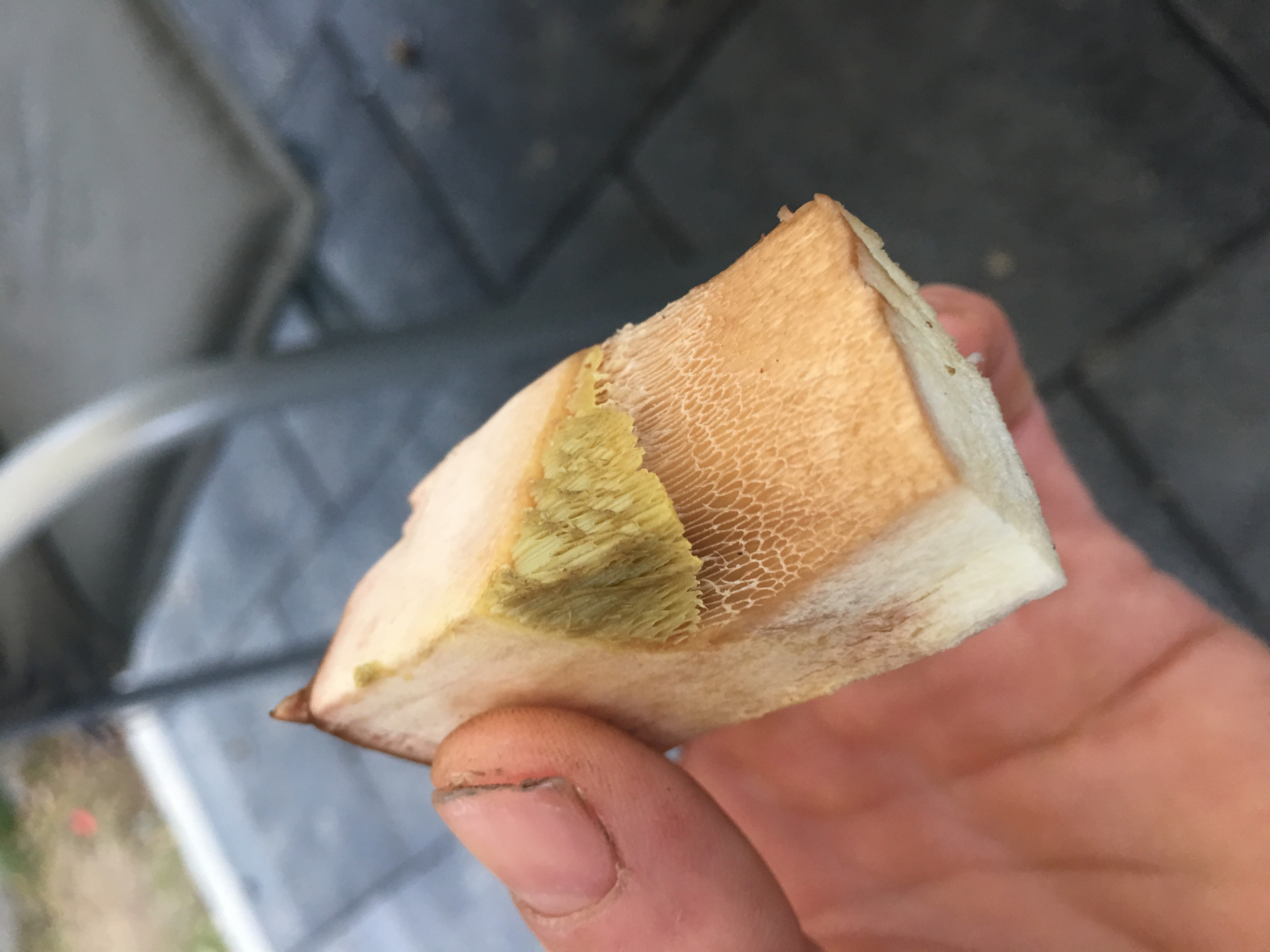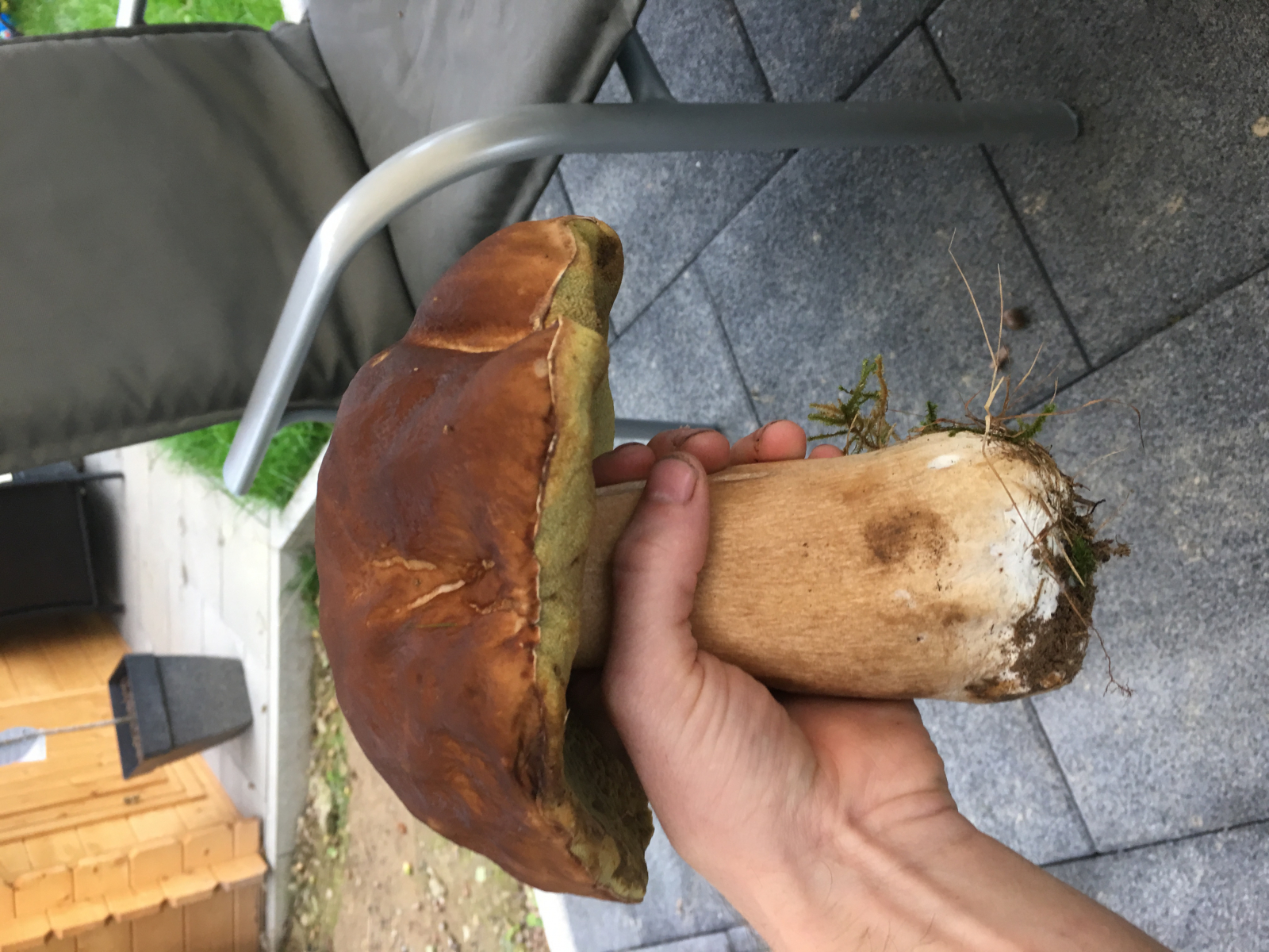 Ich beschäftige mich seit ca 3 Monaten mit Pilzen. Konnte sie bis jetzt gut unterscheiden bis ich heute einen großen Pilz gefunden hab denn ich nicht ganz zuordnen kann. Ich gehe seit 2 Wochen in ein kleines Wäldchen wo ich an die 30 Steinpilze gefunden hab. Und siehe da heute dieser prugel. In diesem Wäldchen wachsen viele giftige Pilze und eben Steinpilze aber ich hab noch keine Marone dort gefunden. Wer kann mir da weiterhelfen was das für ein Pilz ist