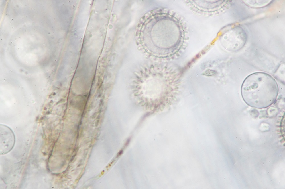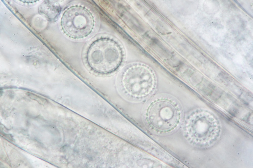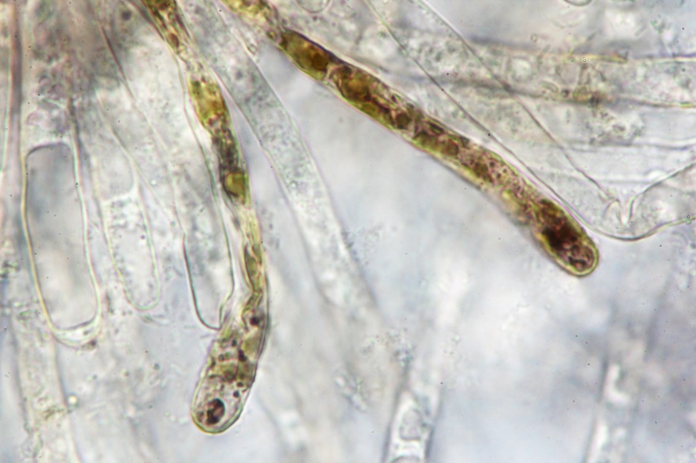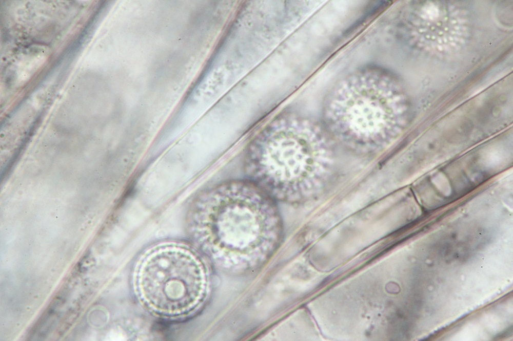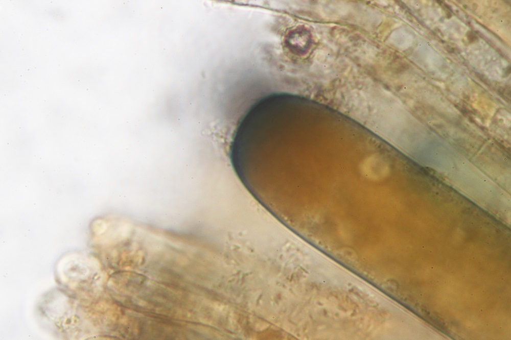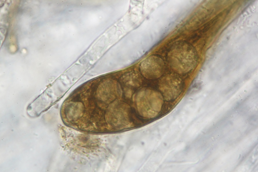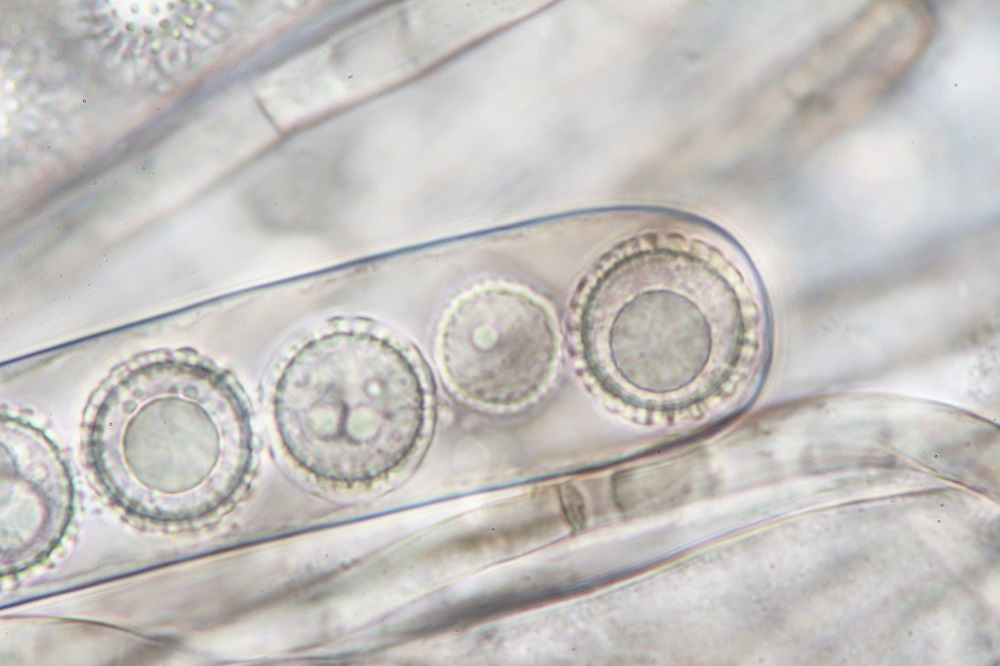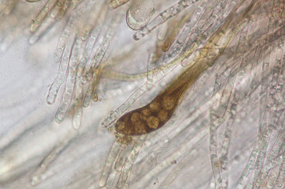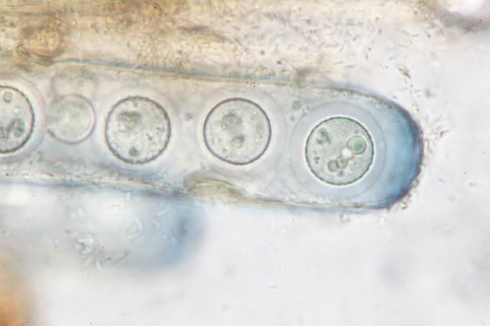 den Pilz habe ich auch Mikroskopiert, aber die Sporen sind noch nicht ganz ausgereift und daher gibt es nur Sporenfotos im Ascus.