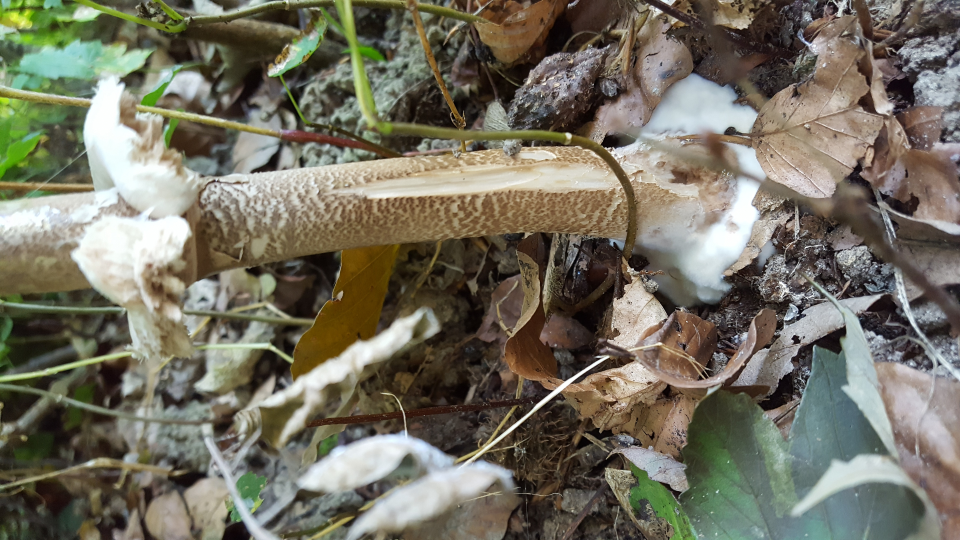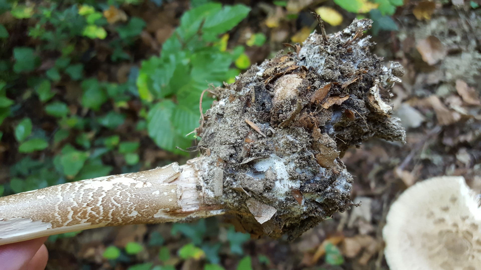 Die Stielbasis ist uninteressant. Der genatterte Stiel ist wichtig. -