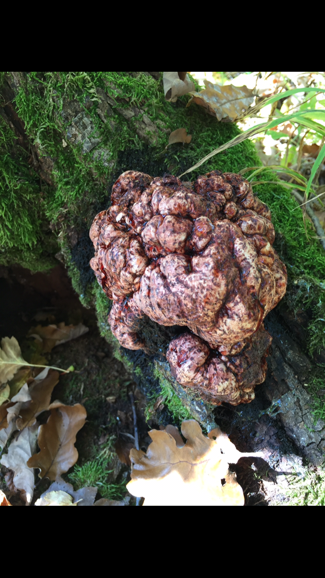 Hallo, ich habe heute einen mir unbekannten Pilz am Boden eines toten Baumes gefunden. Der Pilz war auf Druck elastisch und gab eine rote Flüssigkeit ab. Er stand in einem Laubwald auf Kalkuntergrund.