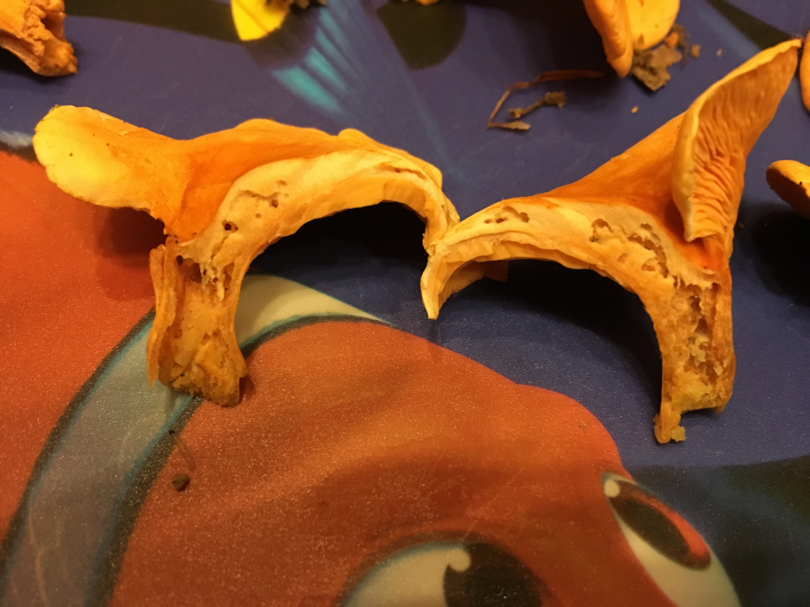 Das sind alles Betrüger, also falsche Pfifferlinge. Du erkennst das nicht nur an den Lamellen, sondern auch an der Biegsamkeit der Pilze.