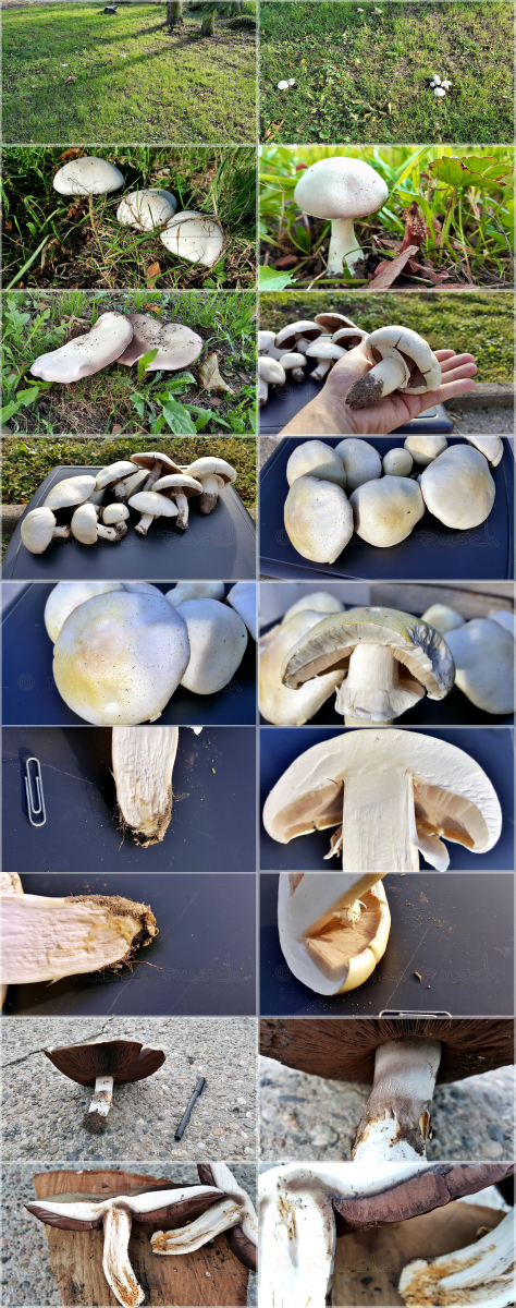 Nur der Waldchampignon rötet. Die anderen bleiben hell. Standort siehe Bilder (außer Waldchampignon, der wuchs am Waldrand auf einer Wiese).