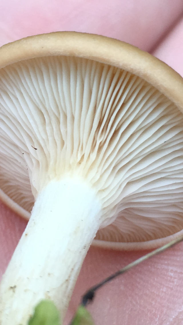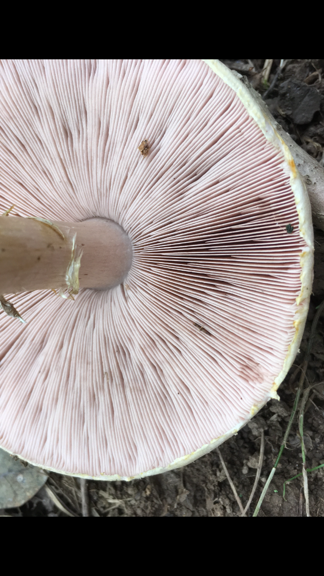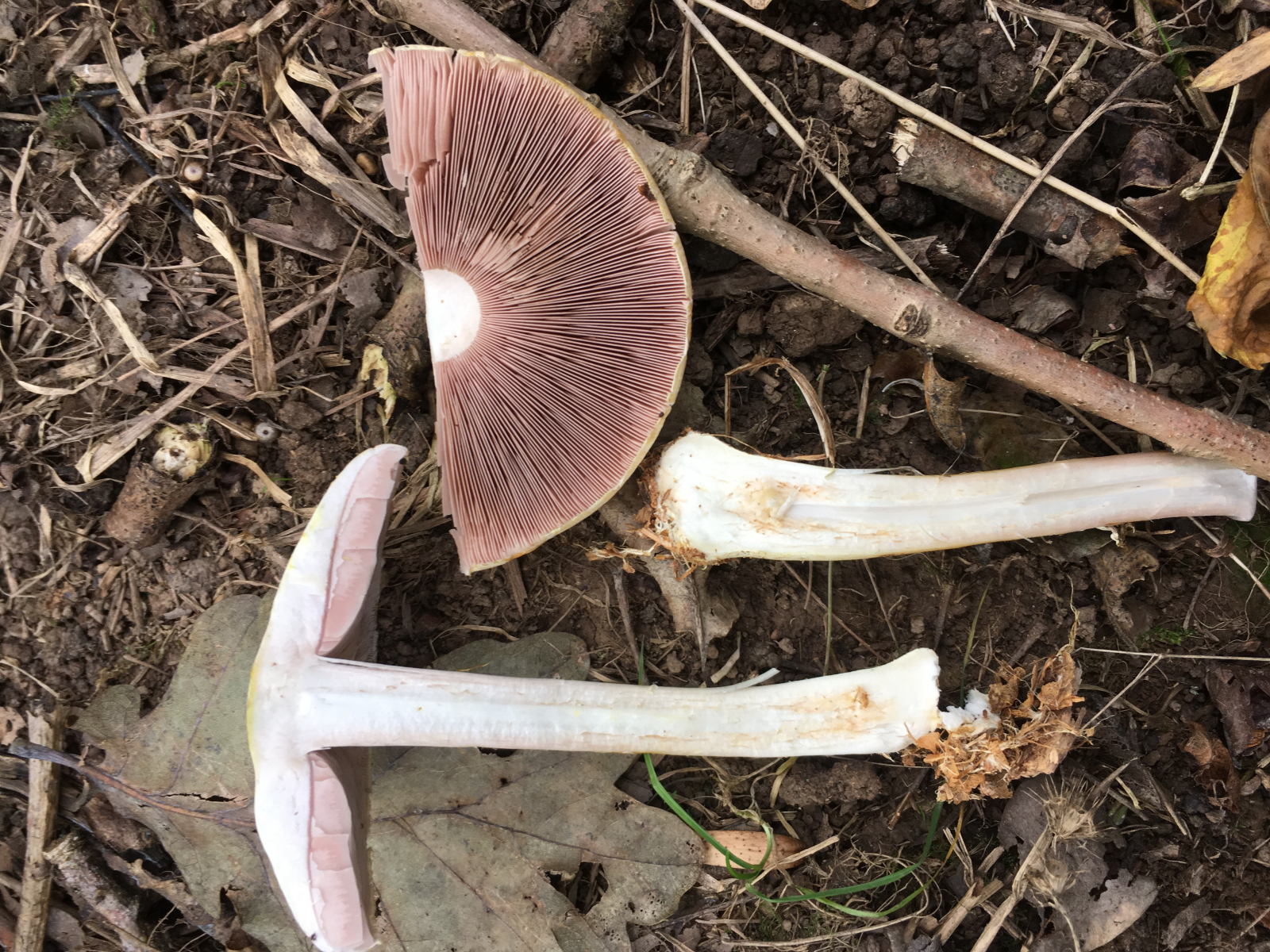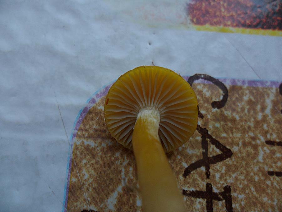 2) Geruch stark Marzipan, Geschmack mild, leicht Marzipan, einzeln stehend , Mischwald unter Buche , Lamellen rosa