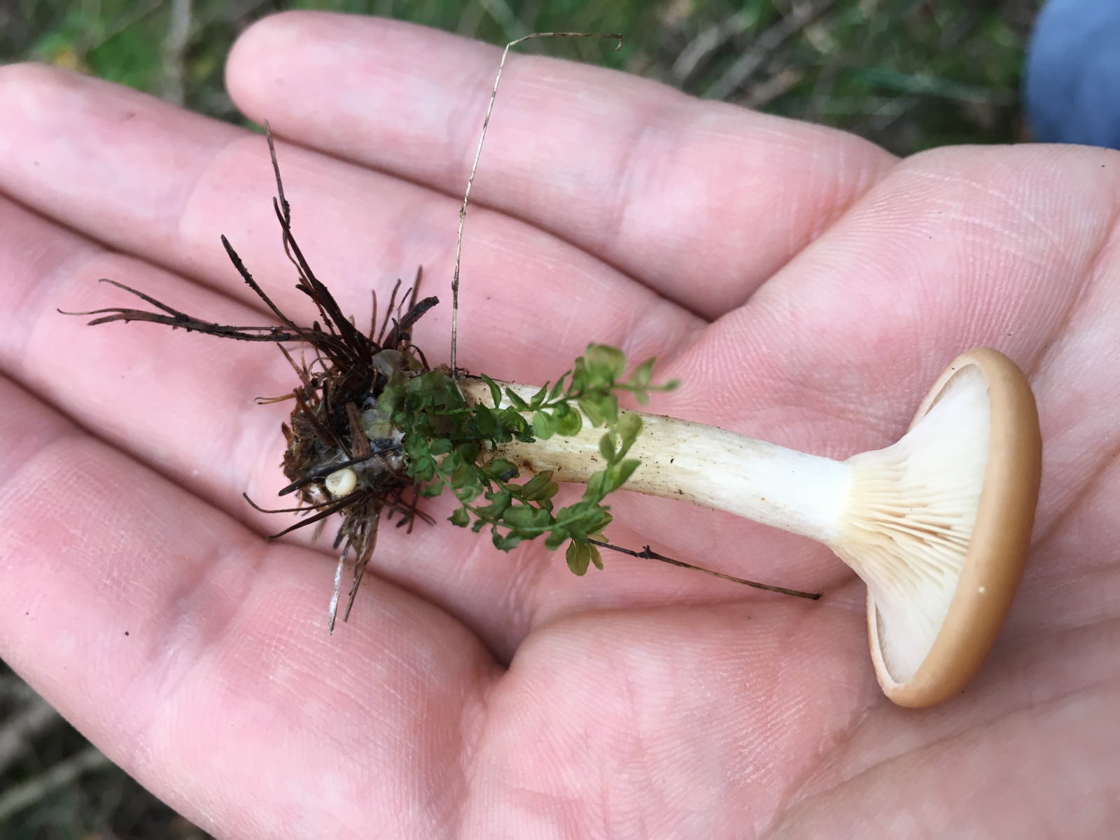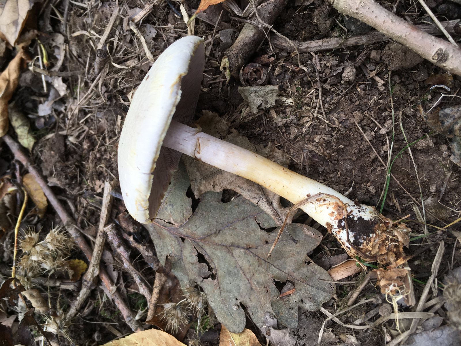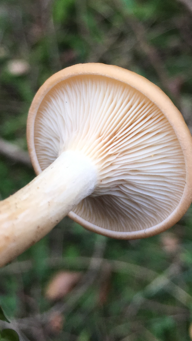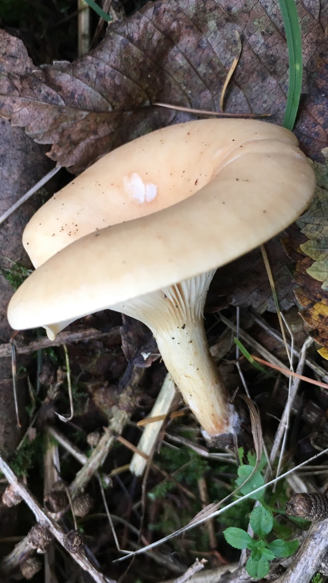 2) Geruch stark Marzipan, Geschmack mild, leicht Marzipan, einzeln stehend , Mischwald unter Buche , Lamellen rosa