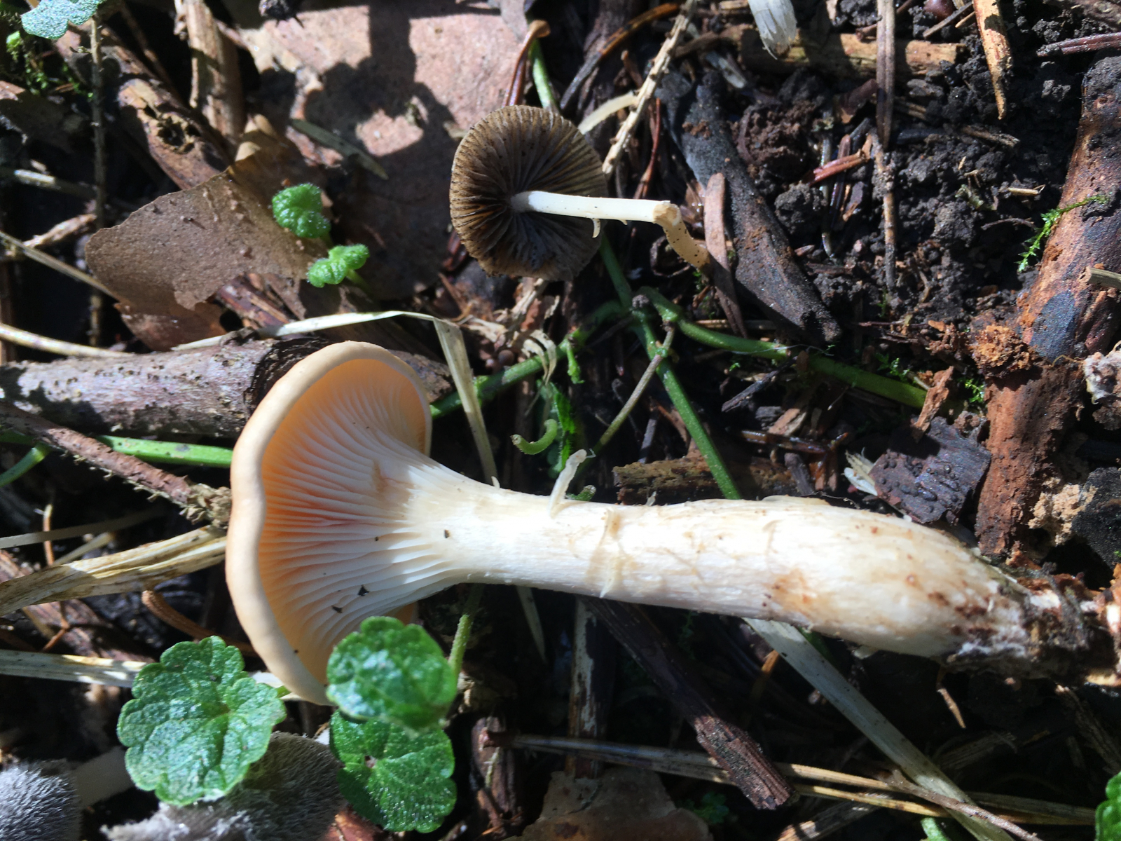 Laccaria sp. , eigentlich ein Suchbild, da gibt es noch Fichtenreizker, Marone und Flaschenstäubling