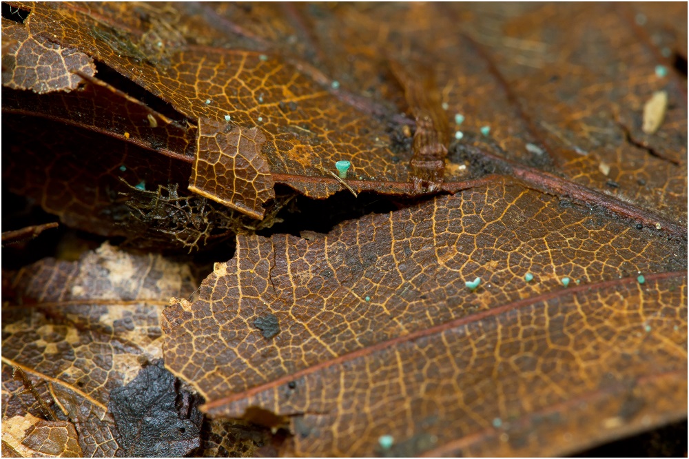 Gestern durfte ich zum allerersten Mal eine Chlorociboria finden.