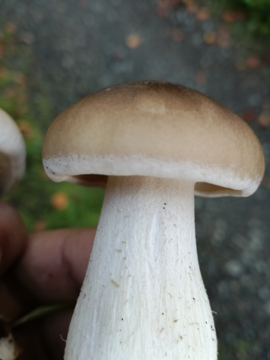 den Clitocybe clavipes, Keulenfuß, habe ich ja wahrscheinlich gestern gefunden - kannte ich nicht - (Dank nochmal an Pablo) , und ein doch markanter Unterschied ist: der Stiel ist irgendwie poröser und wässrig, nicht so fest wie bei jungen Nebelkappen.