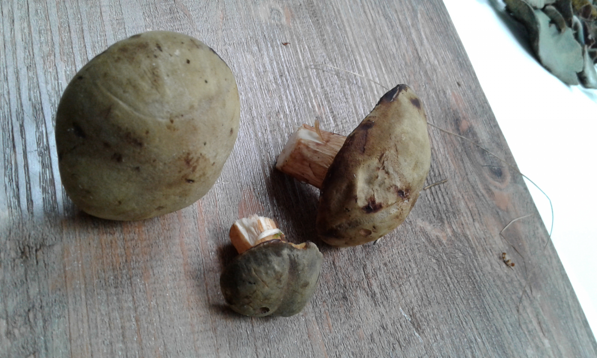 Ne, keine Maronen. Erstens wa er nicht blauend, ferner der Hut eher grau als braun und ledrig. Geruch passte auch nicht. Stiel ging ausserdem an der Basis fast ein wenig is rötliche. also keine Maronen. Deifnitiv nicht.