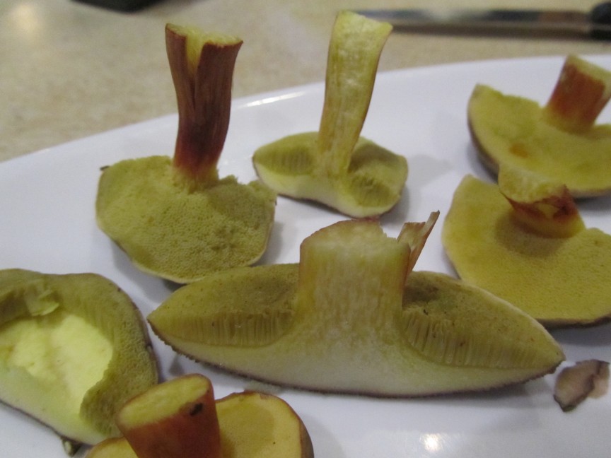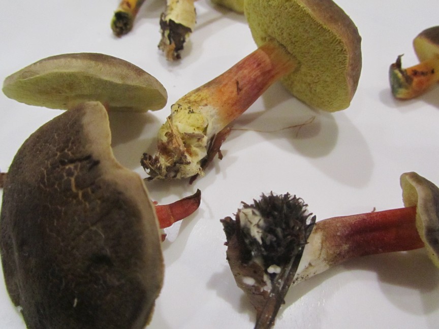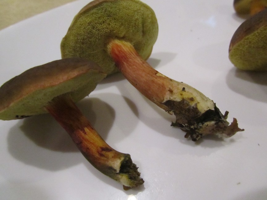 ich habe heute neben Birkenpilzen und zwei kleinen Maronen bei einem kurzen Waldgang einige Röhrlinge gefunden, welche ich schon öfters angetroffen habe, teils recht zahlreich. Ich hatte mich bisher aber nicht getraut sie mitzunehmen. Kann es sich dabei um essbare Rotfußröhrlinge handeln? Ich habe einige Detailfotos gemacht:
