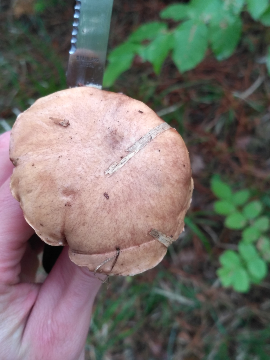 Das könnte in Richtung Ringloser Butterpilz oder Körnchenröhrling gehen, aber wichtig ist u.a. hier die Farbe der Stielbasis und der feinen Myzelfäden an der Stielbasis.